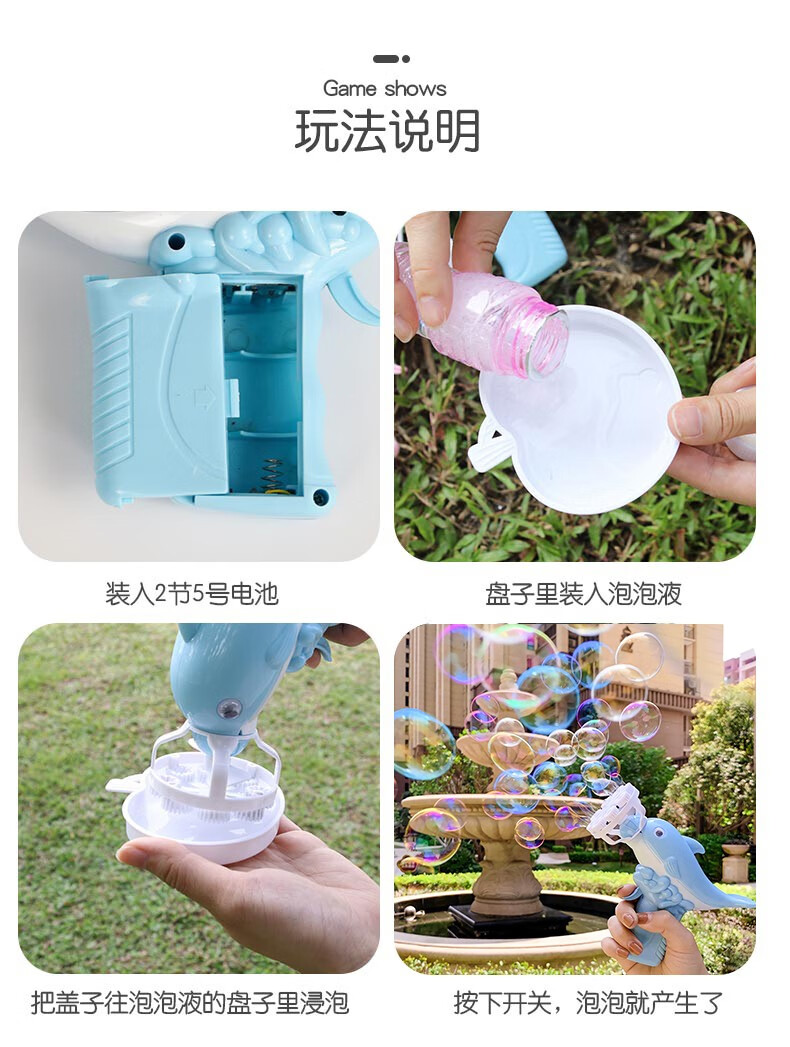 京东自营儿童玩具 吹泡泡枪抖音玩具 网红电动泡泡机玩具 海豚网红相机 男孩女孩夏季戏水带灯光音乐 女朋友礼物 全自动海豚粉+泡泡水