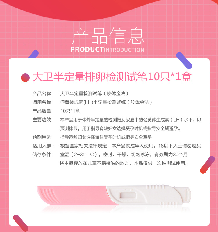 京东自营大卫 半定量排卵试纸 10支笔 LH测排卵期