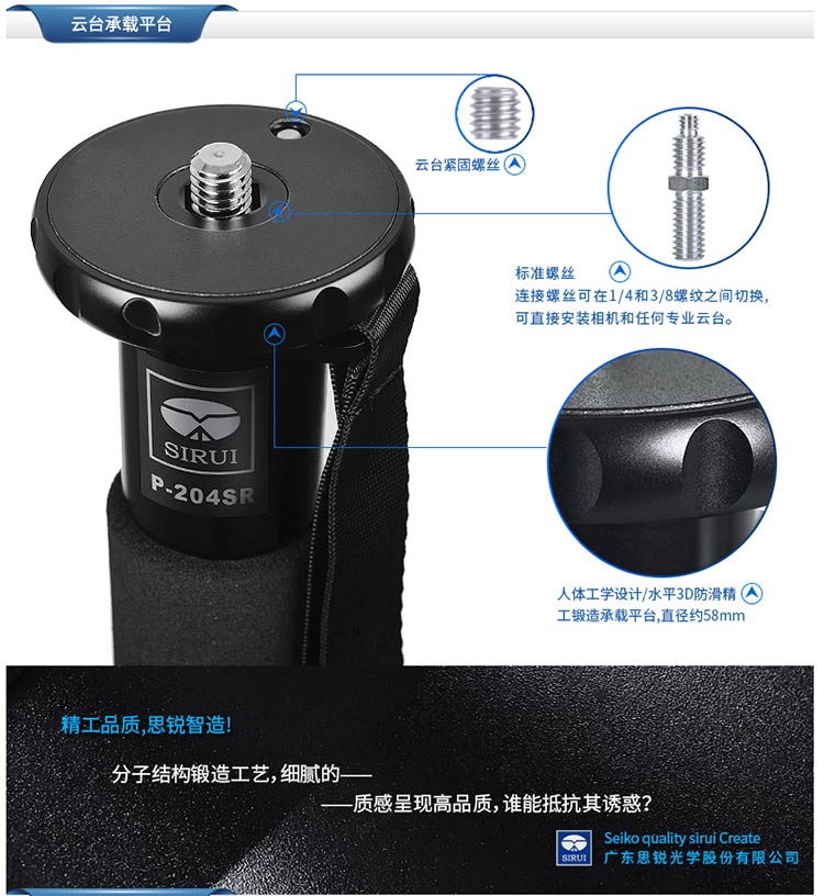 京东自营思锐(SIRUI)独脚架 P204SR 不带云台尼康佳能单反相机脚架 配可拆卸三脚架底座 摄影摄像通用
