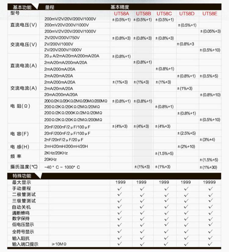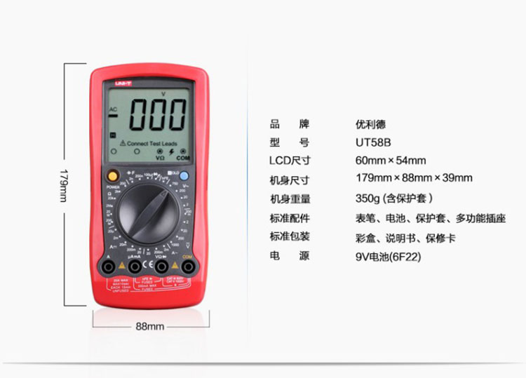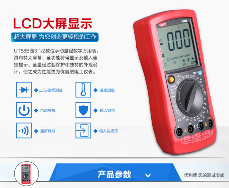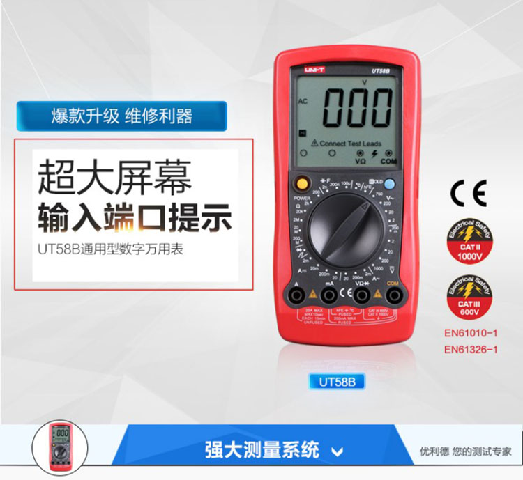 京东自营优利德(UNI-T)UT58B 数字万用表(电子档位提示)