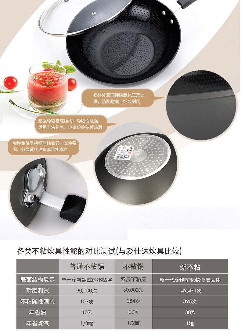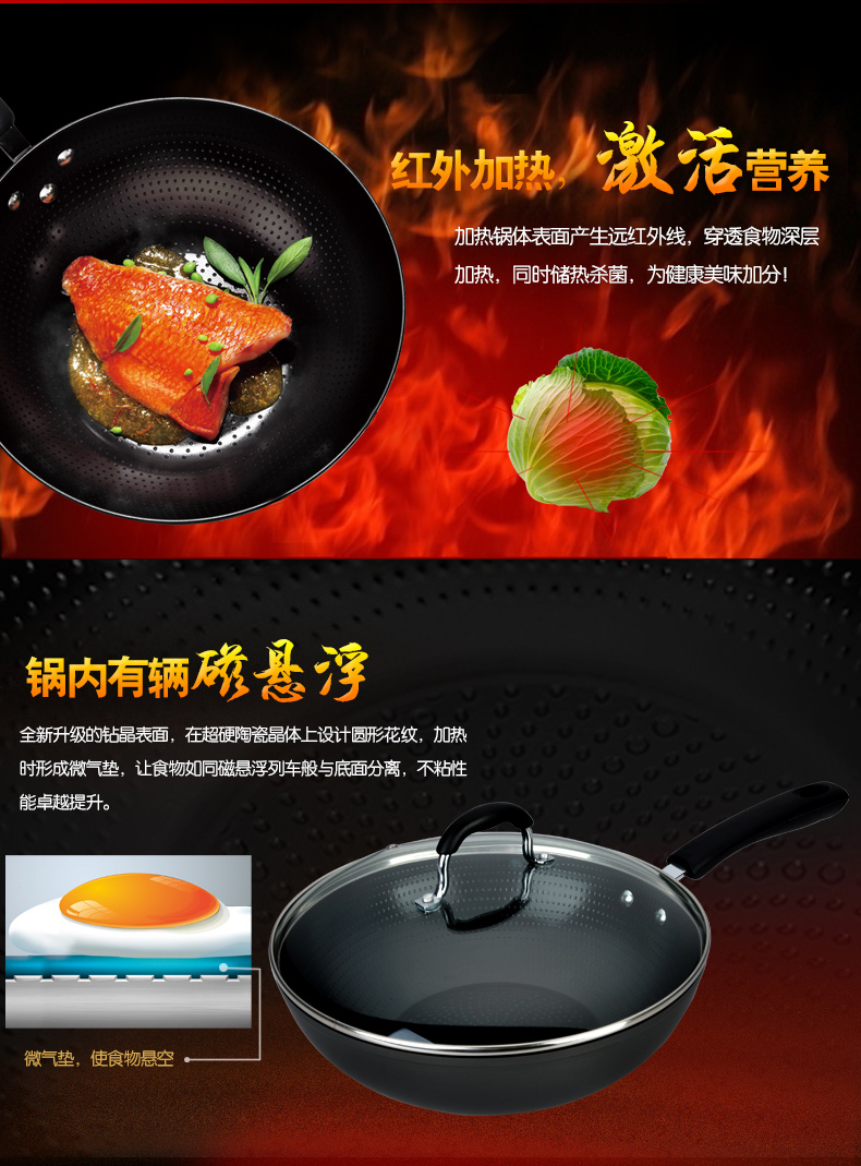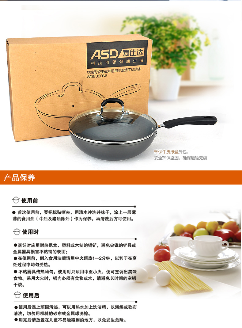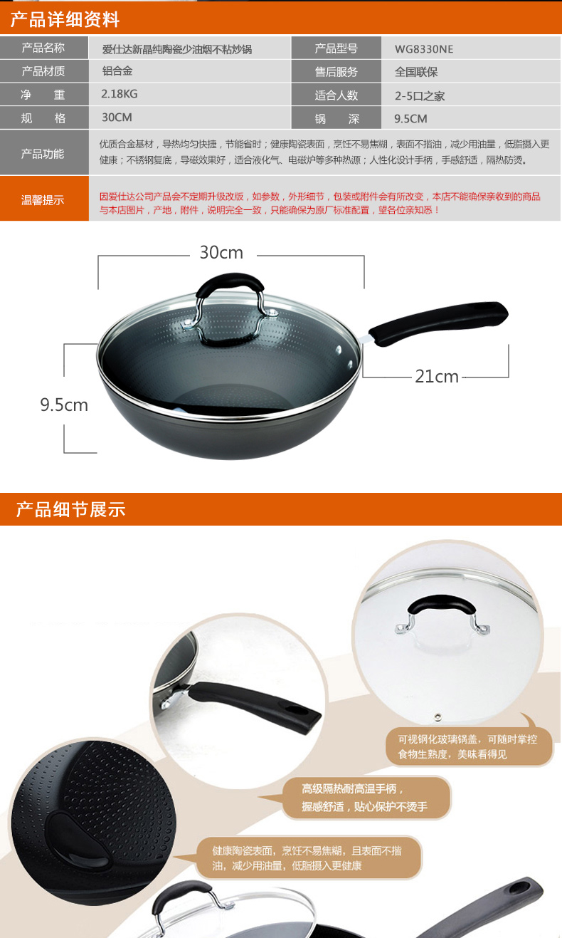 京东自营爱仕达(ASD)陶瓷炒锅少油烟不粘锅家用平底煎锅 炒菜锅30cm 电磁炉燃气通用