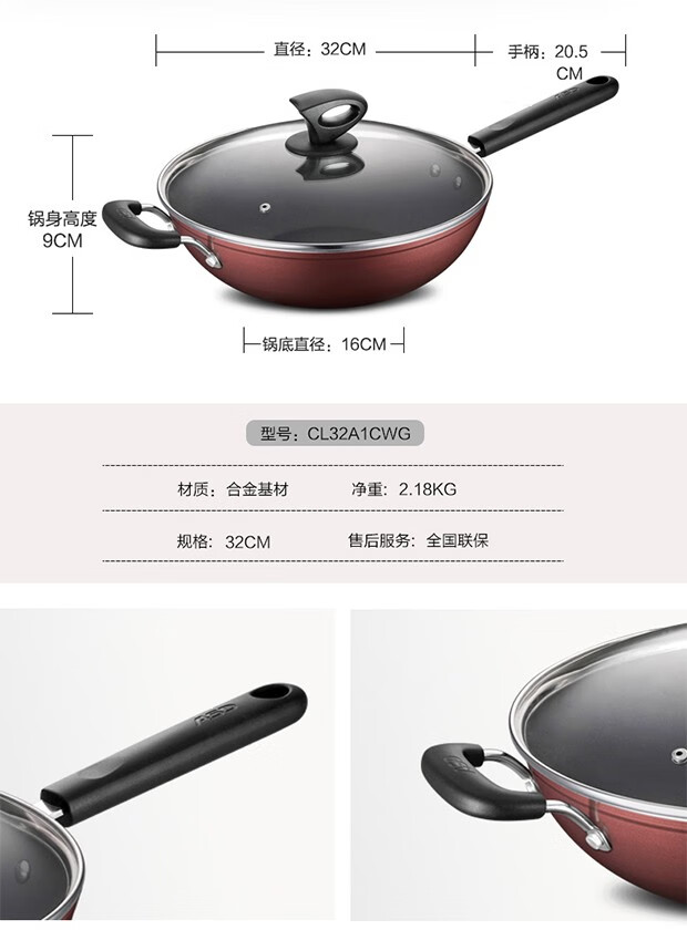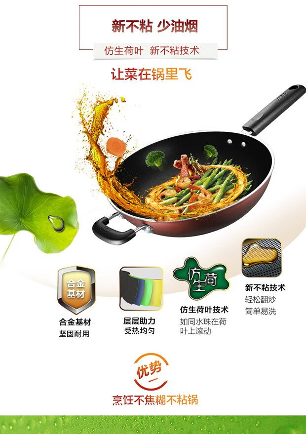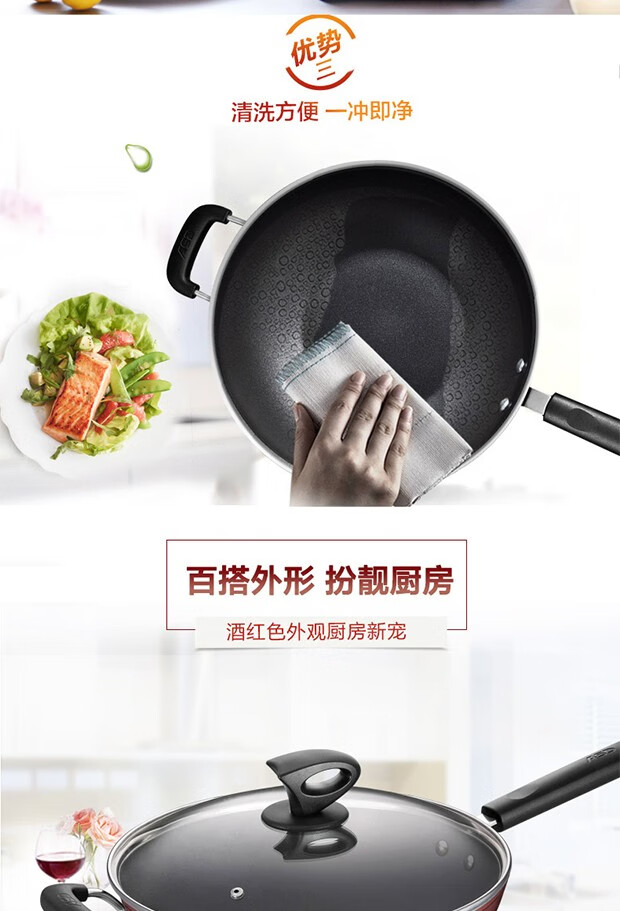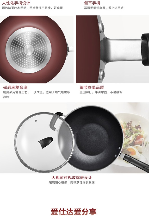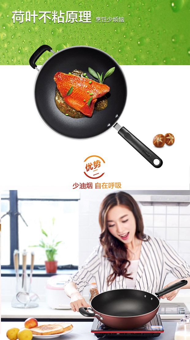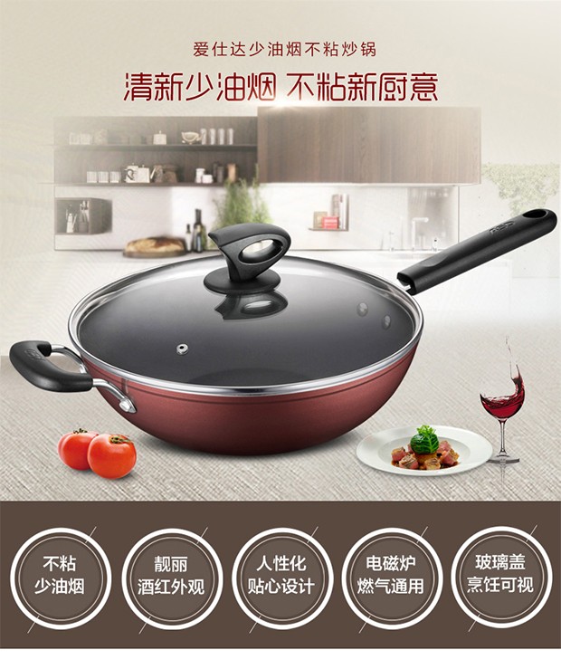 京东自营爱仕达(ASD)炒锅 复底紫色合金带盖不粘锅平底煎锅轻便型 燃气电磁炉通用 32cm