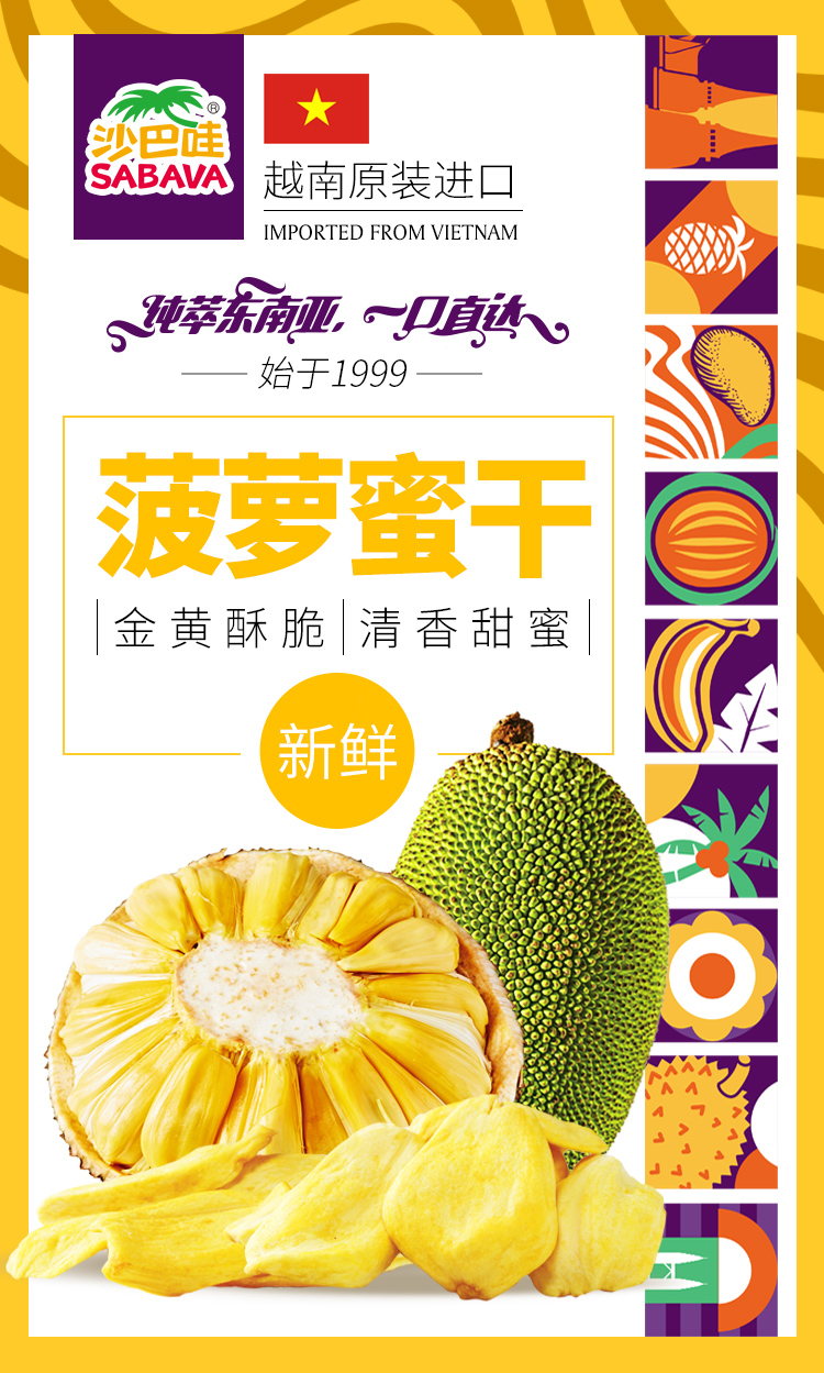 京东自营越南进口 沙巴哇(Sabava) 香脆菠萝蜜干果 220g/袋(原味)即食水果干 进口休闲零食小吃 办公室早餐下午茶