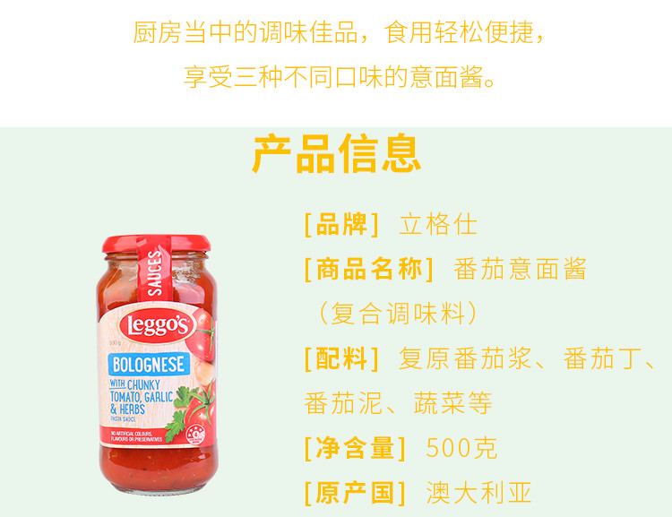 京东自营沃尔玛立格仕 澳大利亚进口 意面酱(复合调味酱) 调味酱 番茄意面酱 500g