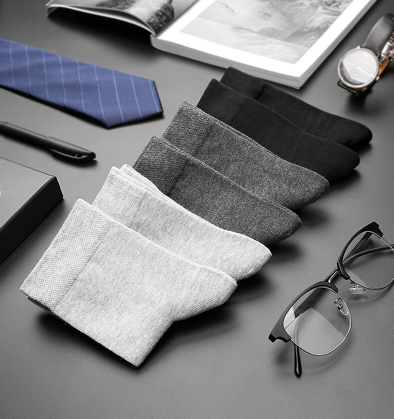 京东自营浪莎袜子男 秋冬纯棉中筒男袜全棉吸汗男士舒适商务休闲棉袜冬季6双装 黑2深灰2浅灰2 均码