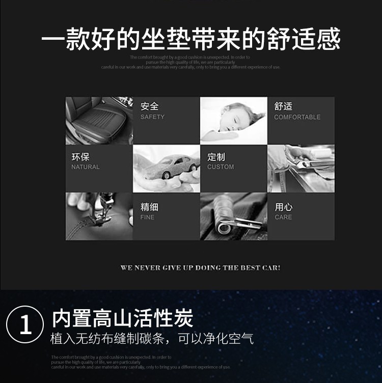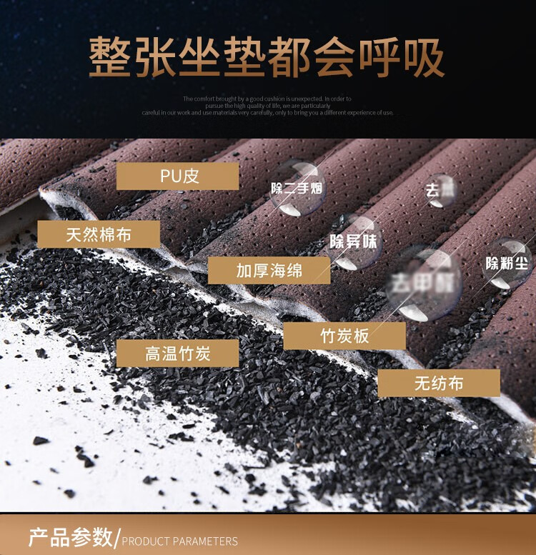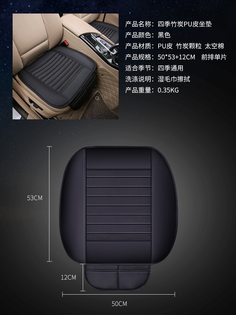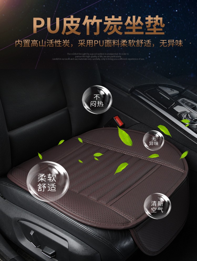 京东自营夏季汽车竹炭坐垫单片办公室通用座椅垫四季垫子免捆绑防滑透气无靠背小方垫净化空气活性炭 黑色
