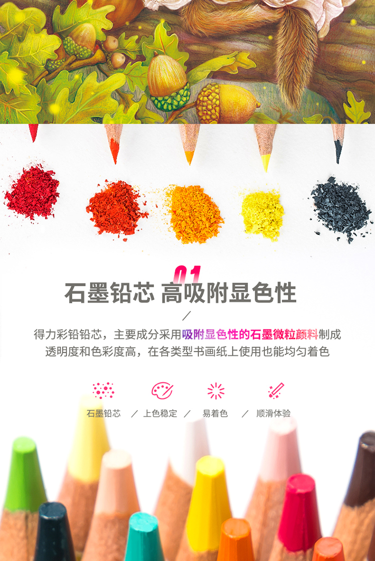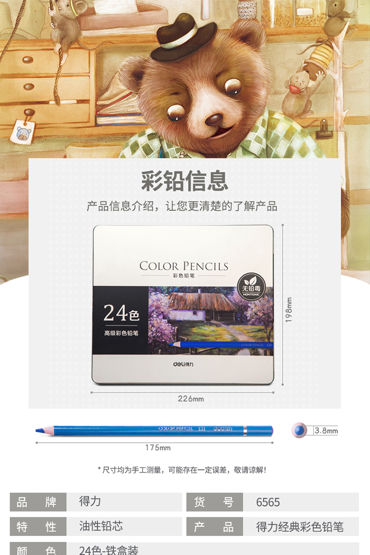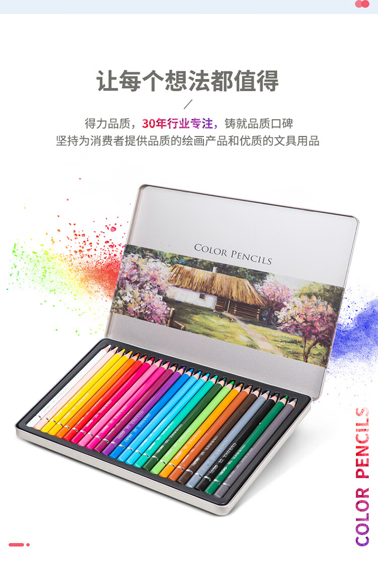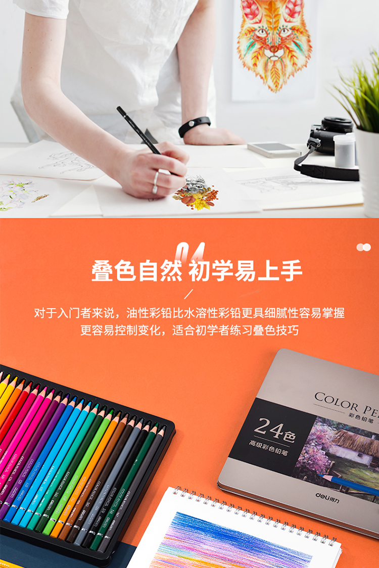 京东自营得力(deli)精品铁盒彩铅 油性高显色彩色铅笔 学生美术设计专业手绘专用绘画笔彩铅填色彩笔 24色套装 6565
