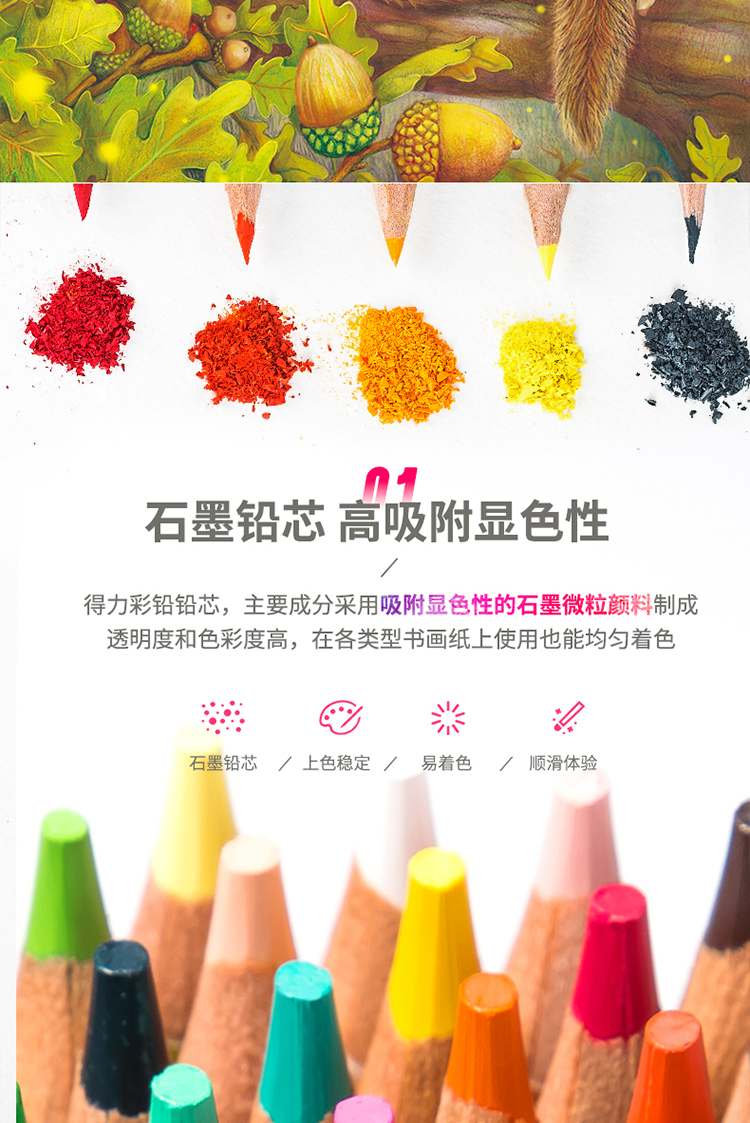 京东自营得力(deli)精品铁盒彩铅 油性高显色彩色铅笔 学生美术设计专业手绘专用绘画笔彩铅填色彩笔 36色套装 6566