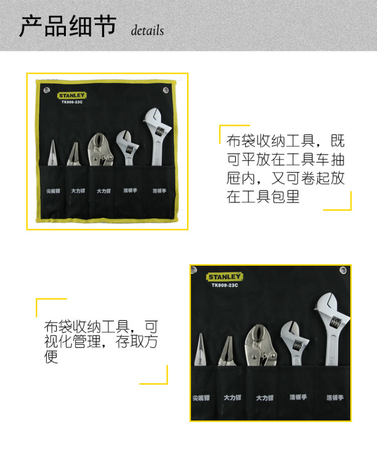 京东自营史丹利(STANLEY)订制5件活动扳手和钳套装 TK909-23C