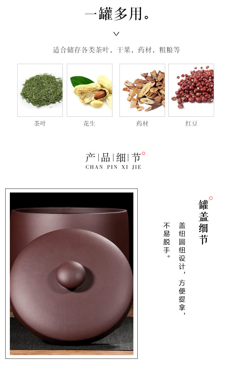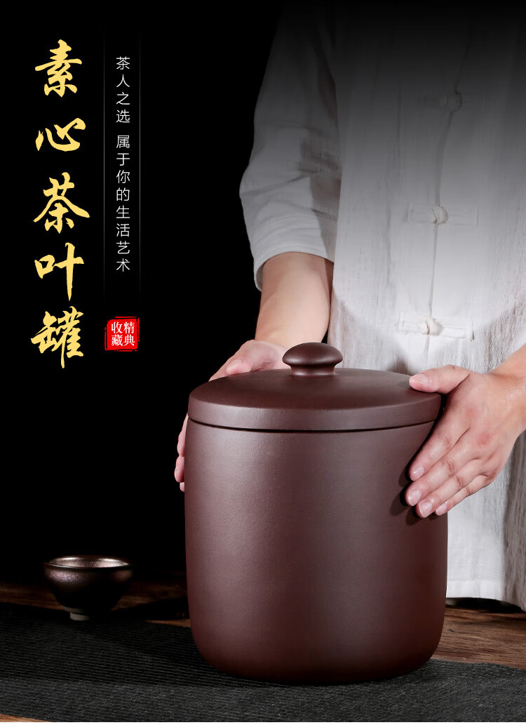 京东自营千寿堂 茶叶罐醒茶罐 功夫茶具配件宜兴原矿紫砂陶瓷茶叶封存储罐