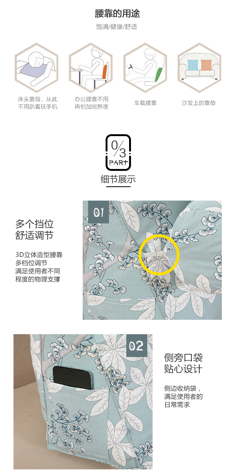 京东自营艾薇靠垫家纺 床头三角大靠枕 软包汽车腰靠背垫办公室沙发抱枕腰枕帆布 小清新 大号带头枕 60*50*20cm