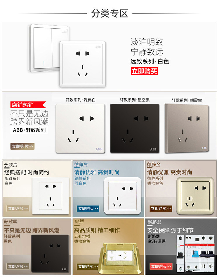 京东自营ABB开关插座面板 一开双控单开双控开关 永致系列 金色 AH105-PG