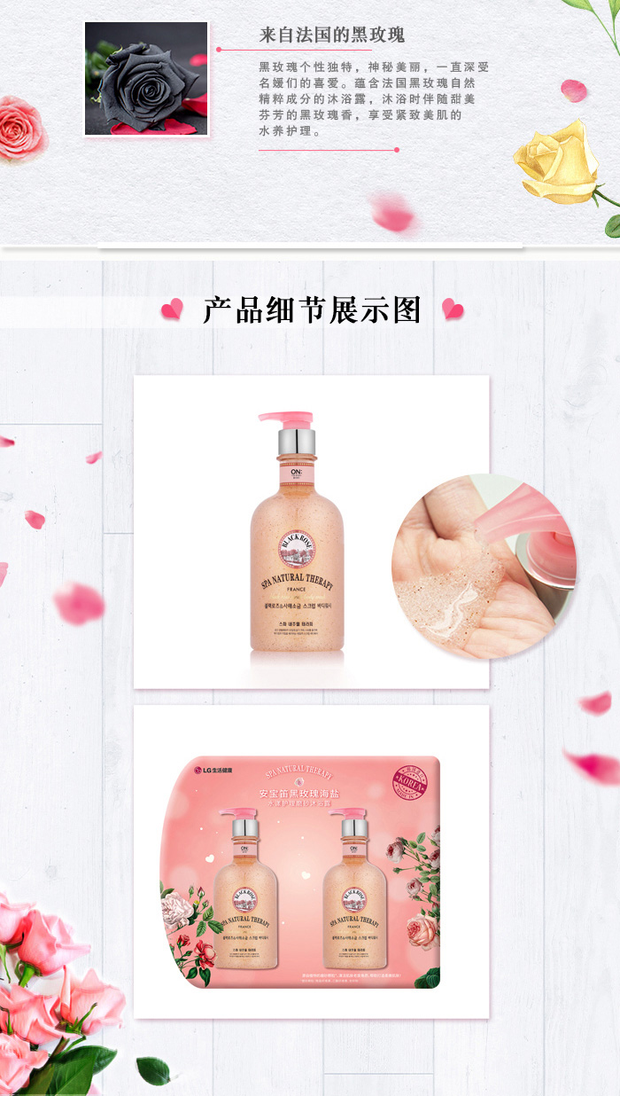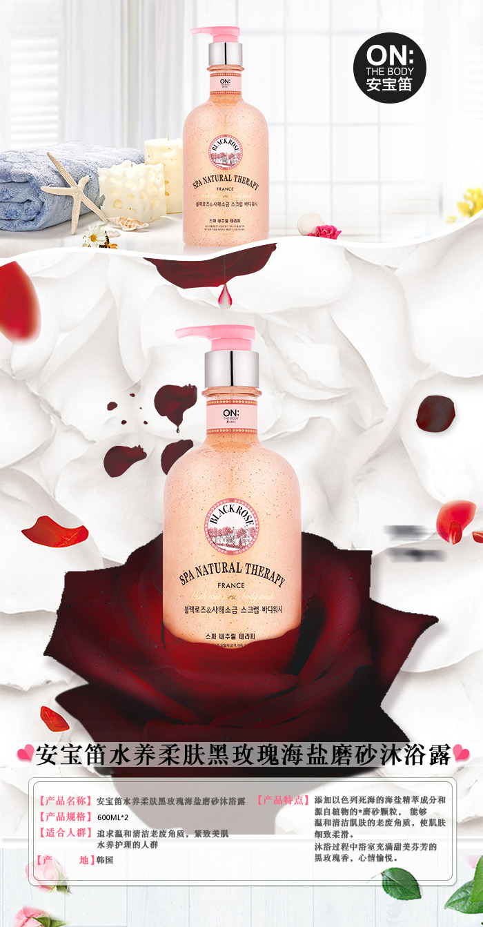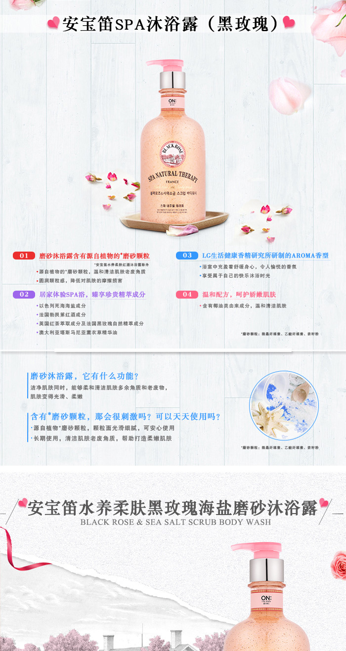 京东自营安宝笛 水养柔肤黑玫瑰海盐磨砂沐浴露 600ml*2支 沐浴乳 沐浴液