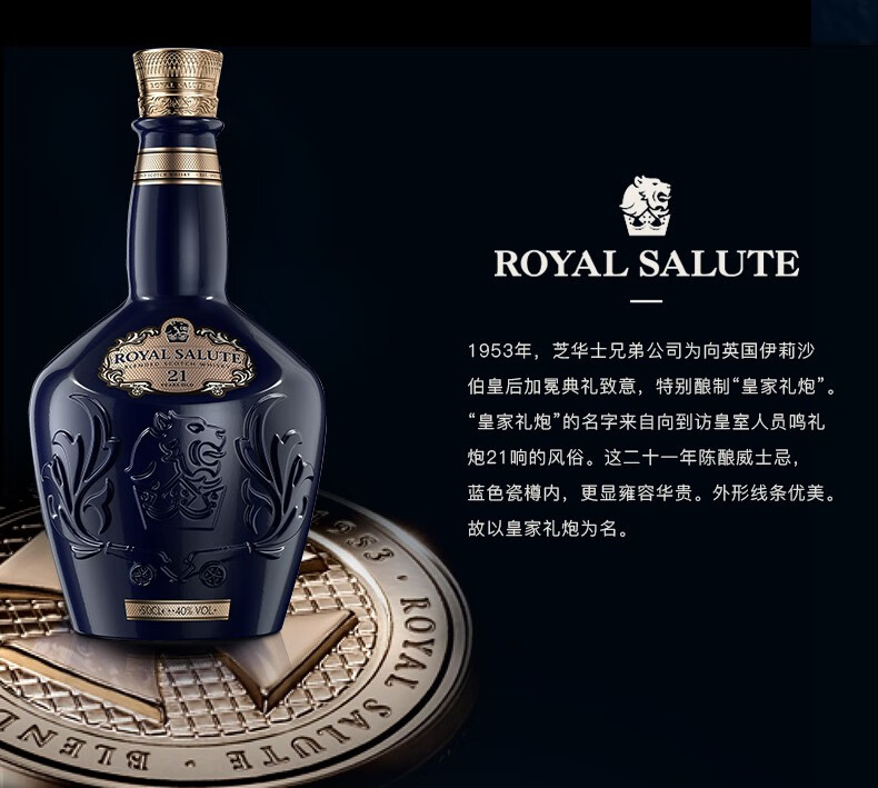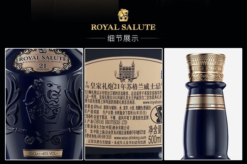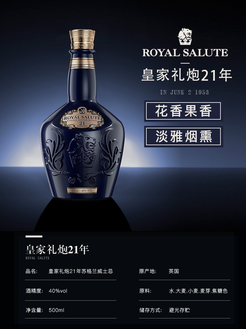 京东自营御玖轩 皇家礼炮21年500ml(Royal Salute)苏格兰调和型威士忌 原装进口洋酒
