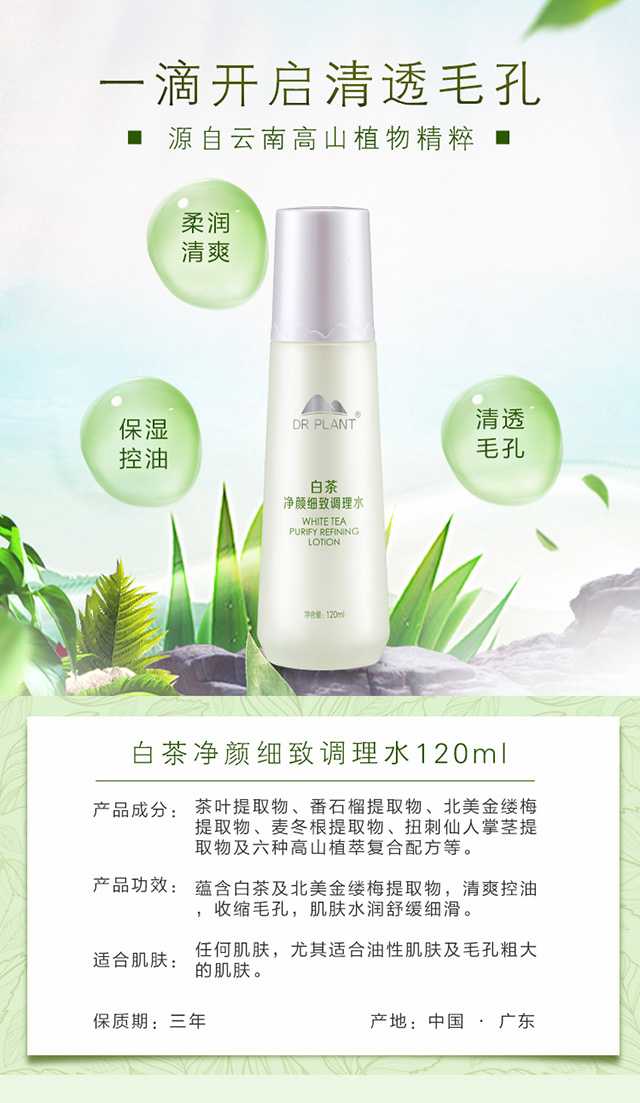 京东自营植物医生 白茶净颜细致调理水120ml 补水保湿控油收缩毛孔护肤水