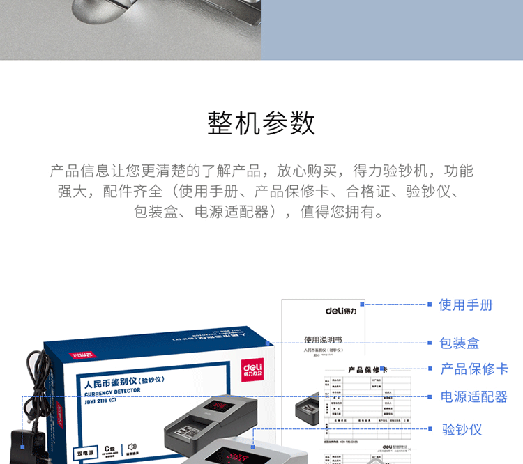 京东自营得力(deli)2019新版高性价比便携式双电源经济验钞 点钞仪 支持2019新币 语音提示2116