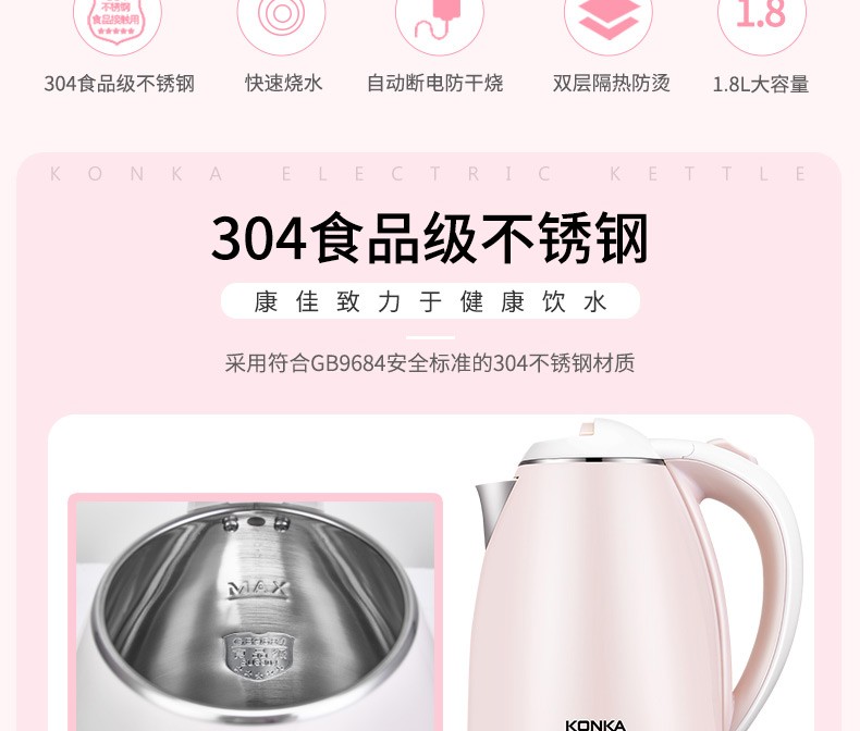 京东自营康佳(KONKA)烧水壶电热水壶 1.8L大容量电水壶 KEK-15DG1828