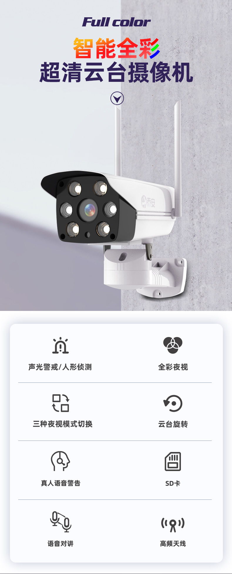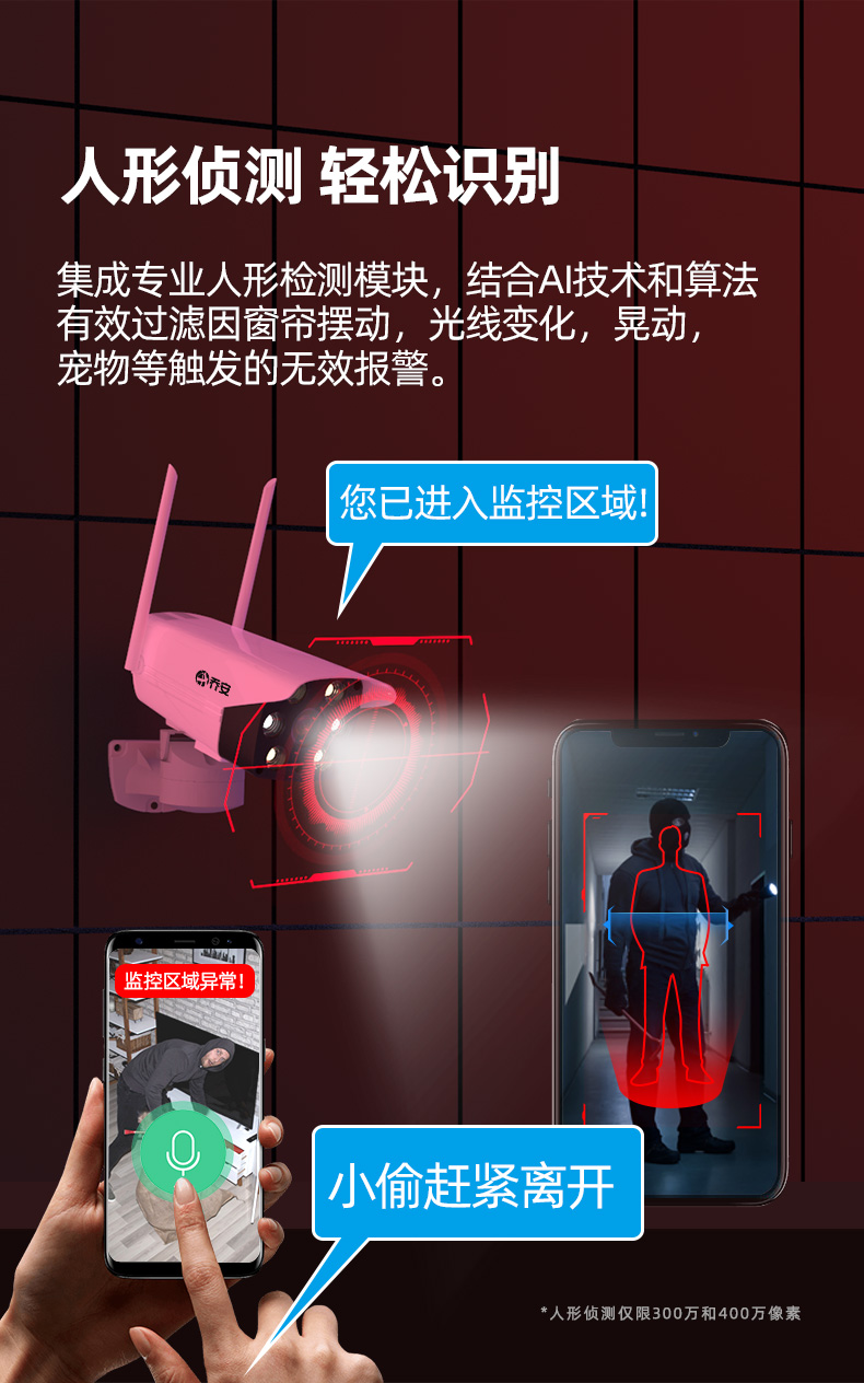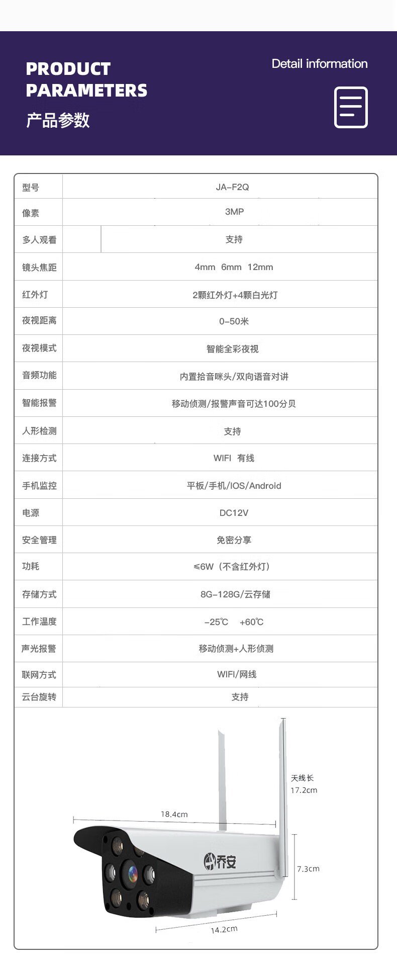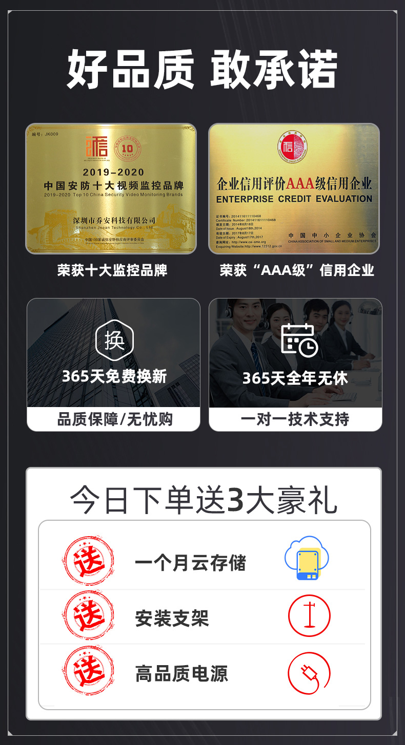京东自营乔安 JOOAN 无线监控摄像头 300万 wifi高清全彩夜视家用云台旋转一体机 手机远程监控器室外防水摄像机