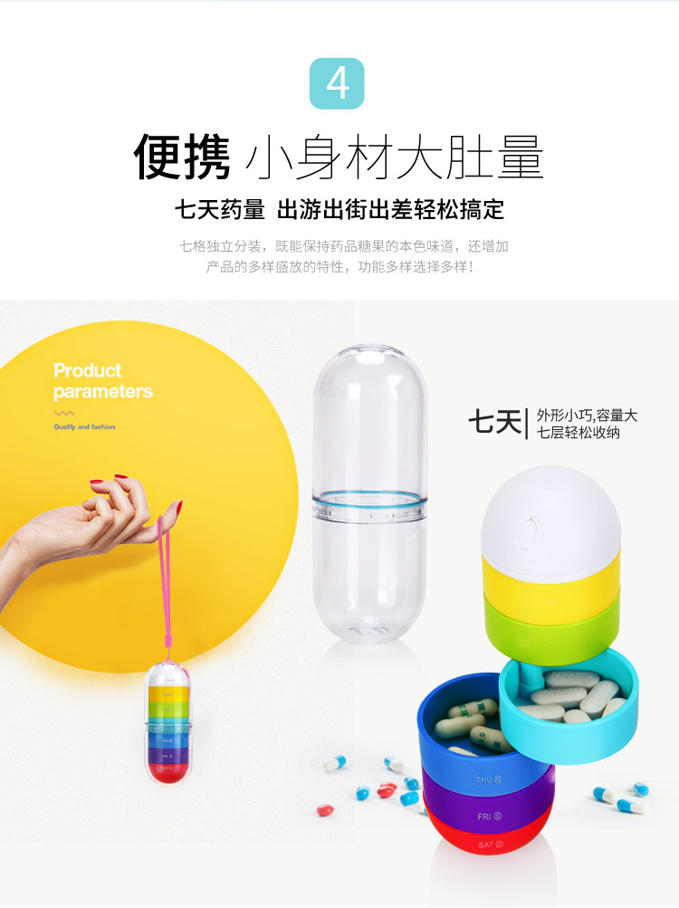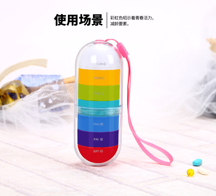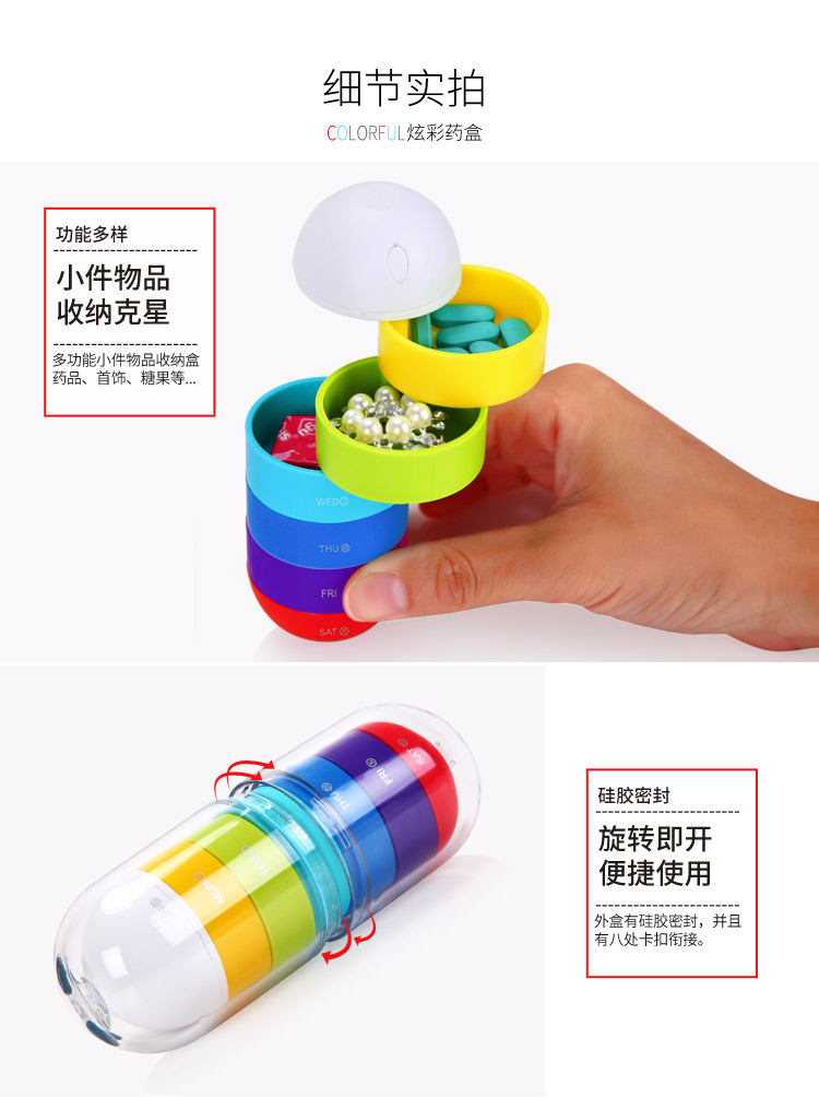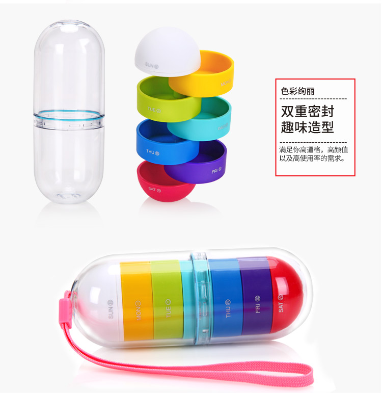 京东自营亿高 EKOA 炫彩药盒七彩随身便携迷你药盒一周分药收纳盒创意便携药丸小藥盒子