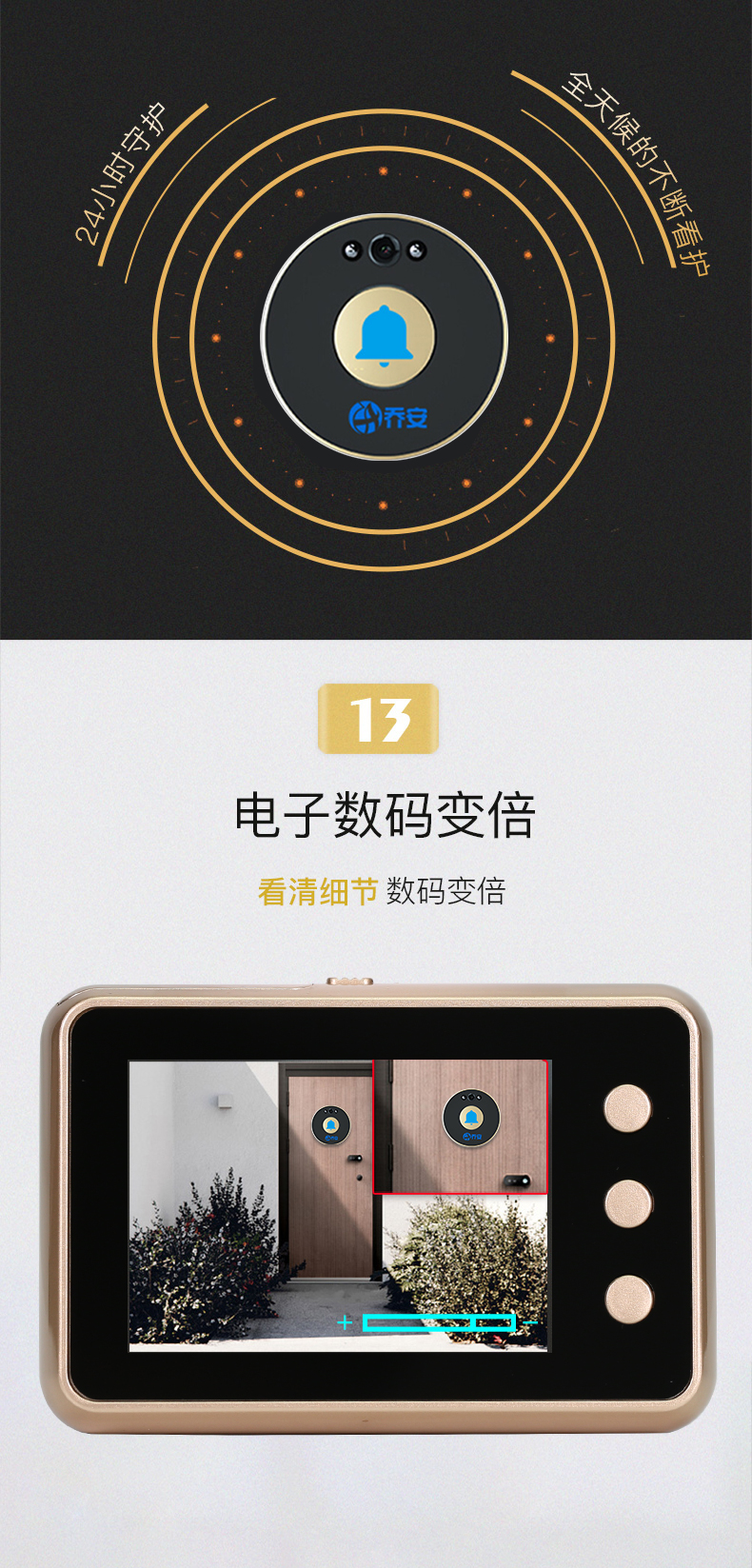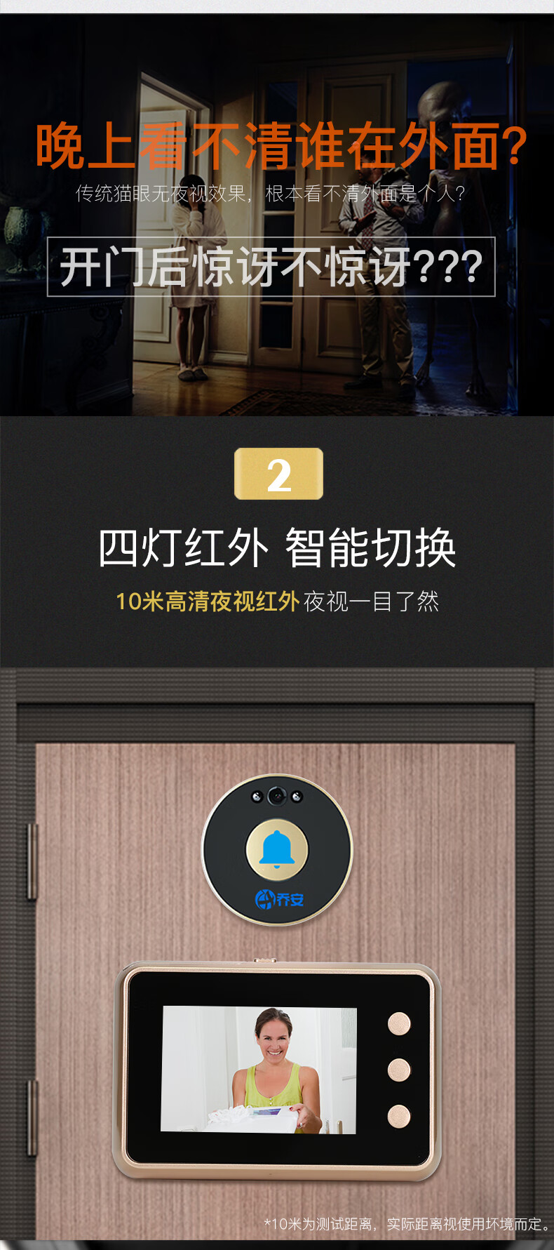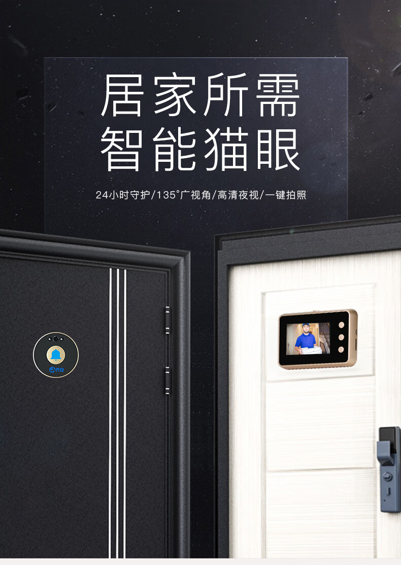 京东自营乔安 JOOAN L5 乔安猫眼监控摄像头 家用可视智能高清夜视电子录像防盗门铃门镜