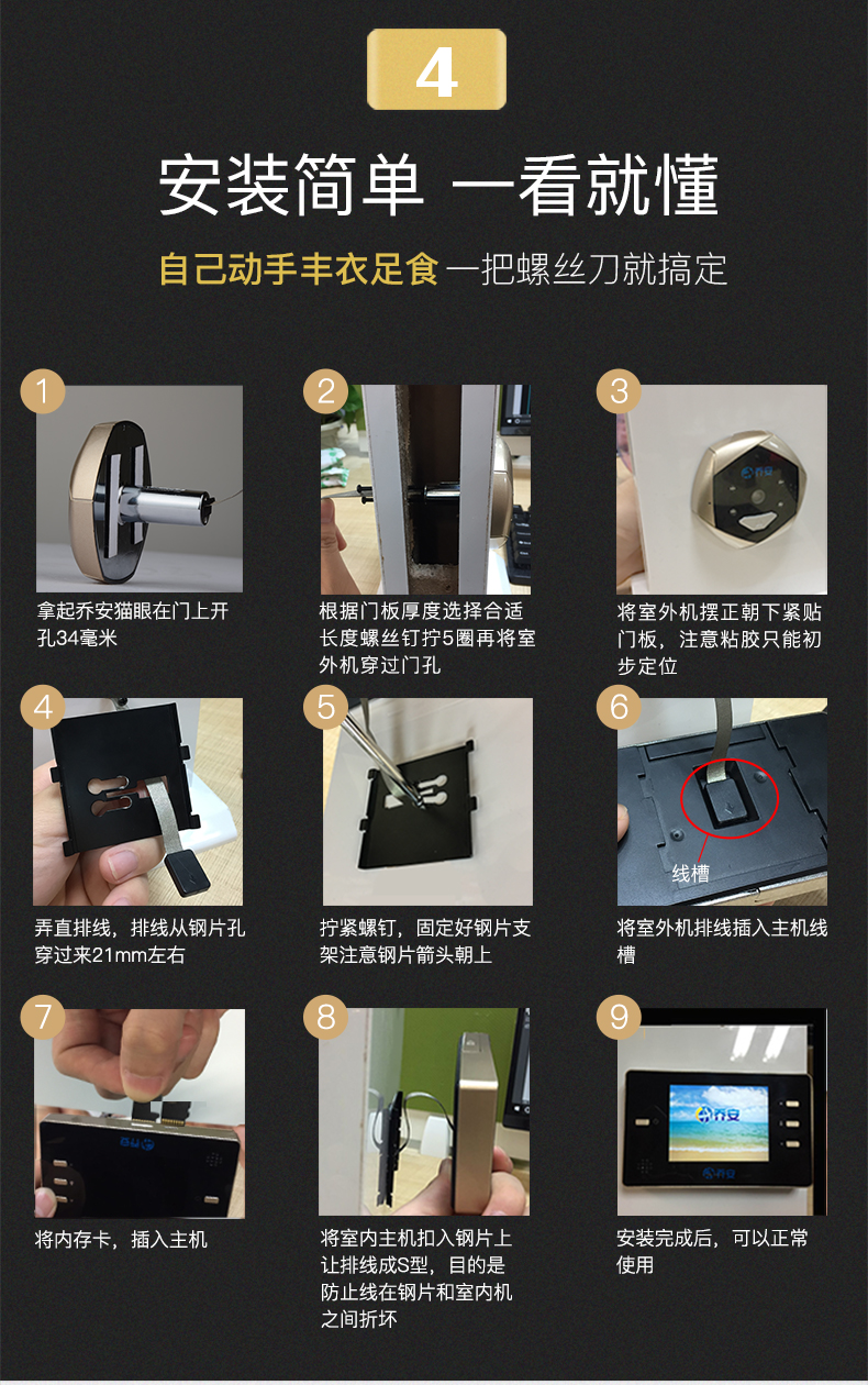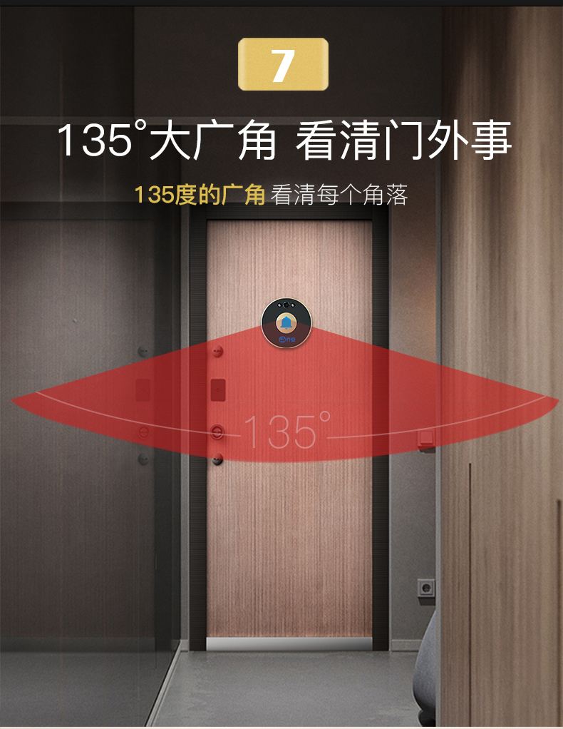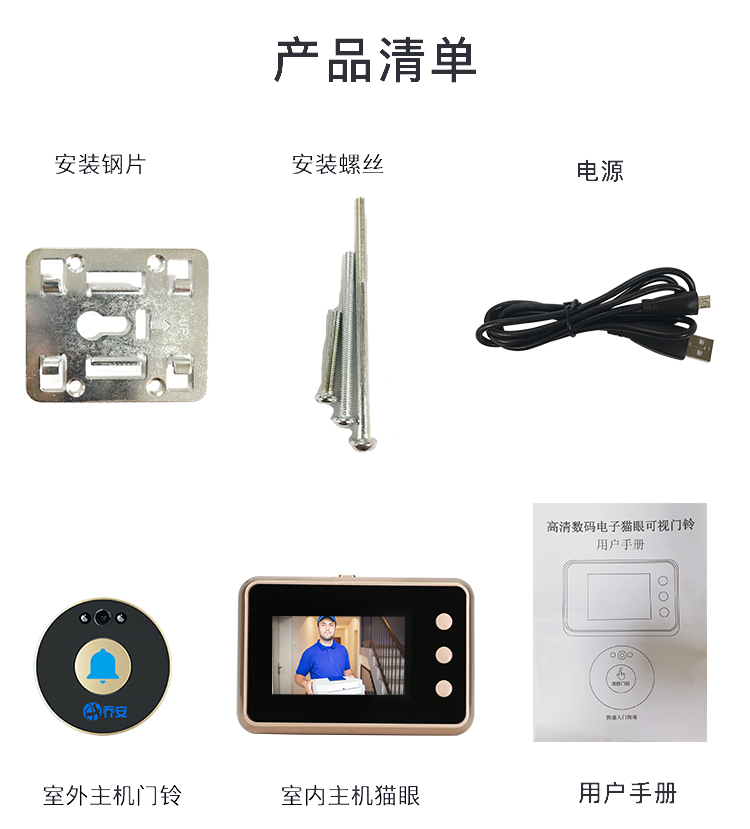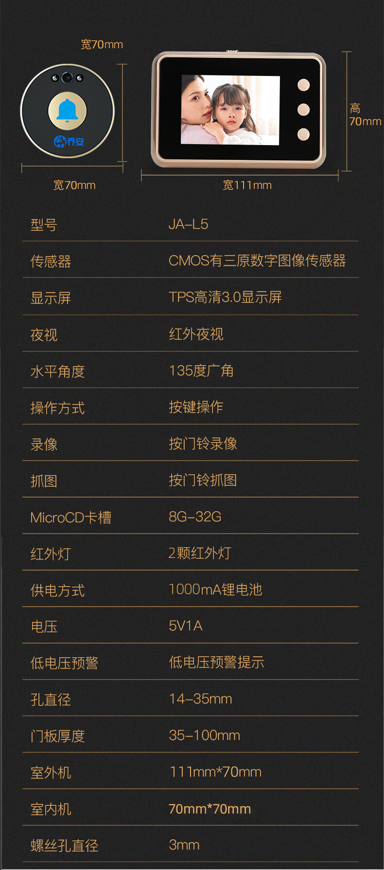 京东自营乔安 JOOAN L5 乔安猫眼监控摄像头 家用可视智能高清夜视电子录像防盗门铃门镜