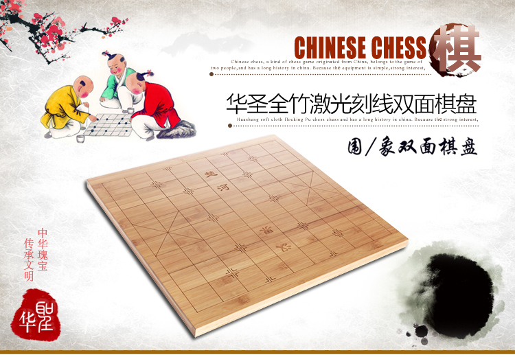 京东自营华圣围棋棋盘中国象棋棋盘五子棋 2CM全竹碳化刻线双面木质棋盘棋类桌游