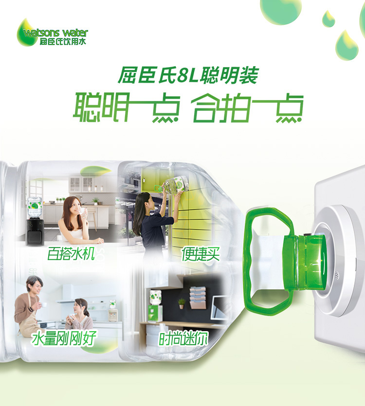 京东自营屈臣氏(Watsons)饮用水(添加矿物质)百年水品牌 家庭用水 8L*2桶 整箱装