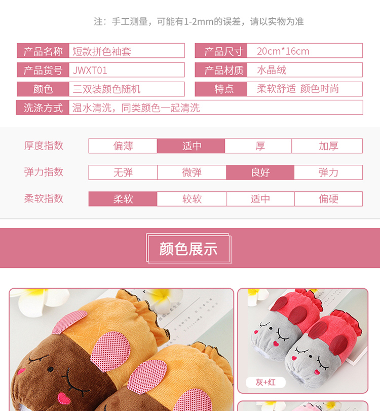 京东自营纪维希 三件套装 套袖短款儿童袖套 韩版卡通可爱学生护袖家务防污套袖 JWXT01