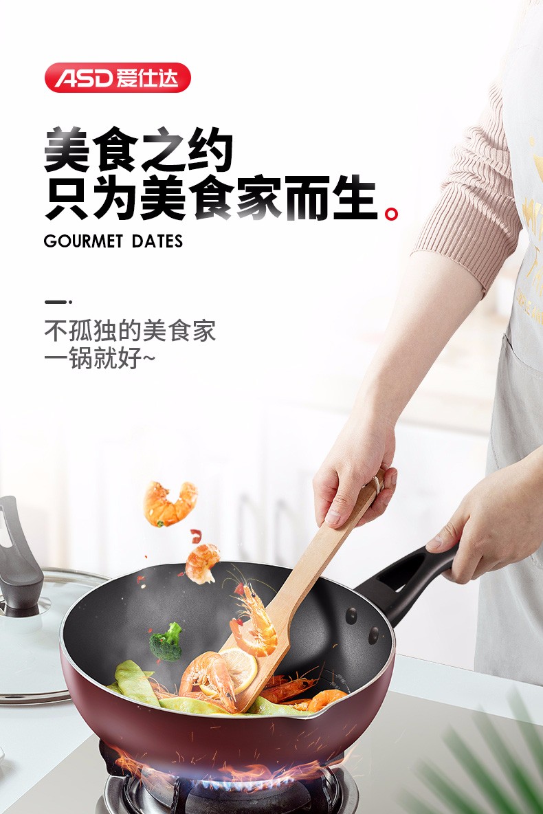 京东自营爱仕达(ASD) 平底煎锅不粘锅炒锅 控油少烟 电磁炉燃气通用厨具 34CM燃电通用