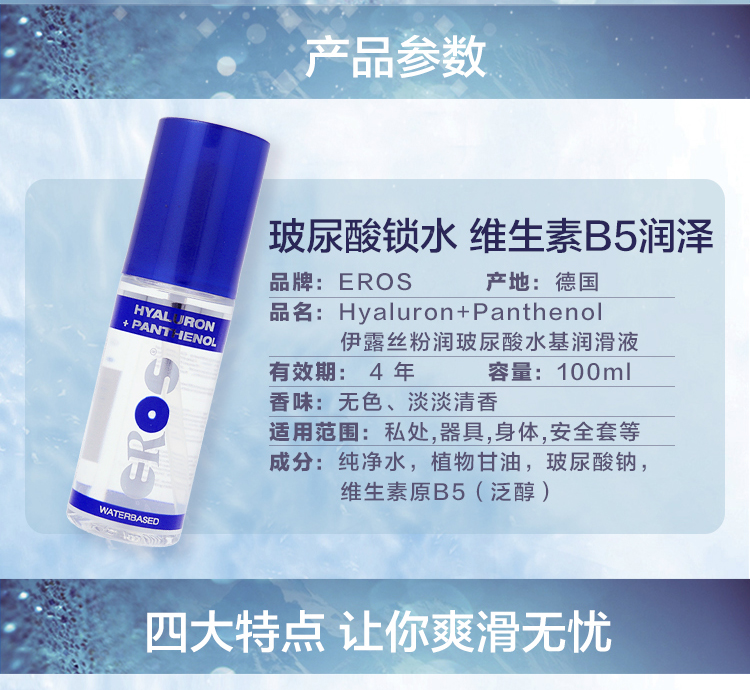 京东自营德国进口Eros 粉润玻尿酸 水溶性润滑液 人体润滑剂 成人用品润滑油 情趣 男女性用品 100ml