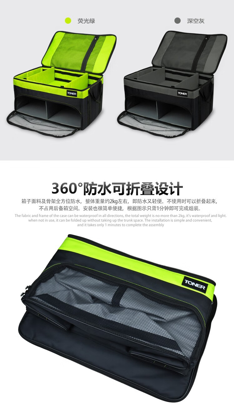 京东自营拙列 汽车收纳箱可折叠双层多功能车载后备箱储物箱车用尾箱整理箱球鞋收纳 奔驰宝马奥迪路虎SUV 拓纳 荧光绿