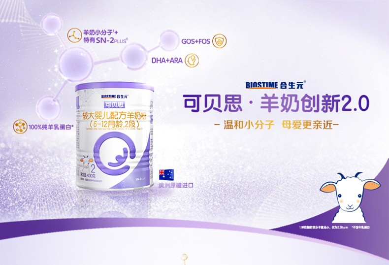 京东自营合生元 可贝思2段400g 较大婴儿配方羊奶粉6-12个月 原罐进口(JD仓直发)