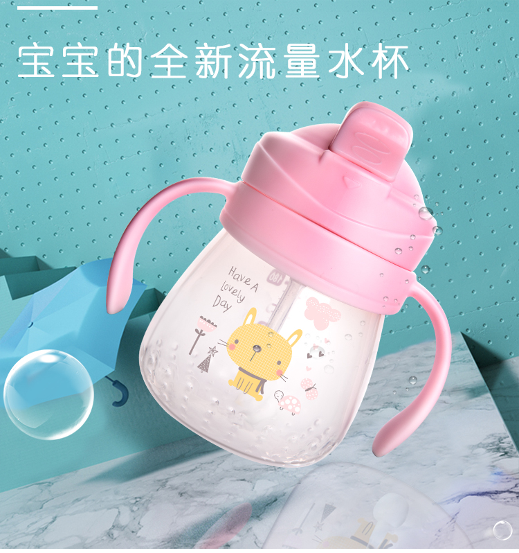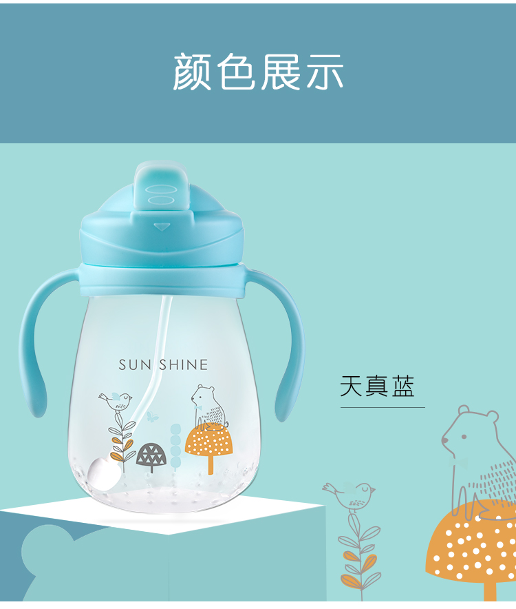 京东自营小白熊(Snow Bear)宝宝PP吸管水杯 儿童学饮杯 婴儿防漏喝水杯 带手柄 蓝色 200ML 09739