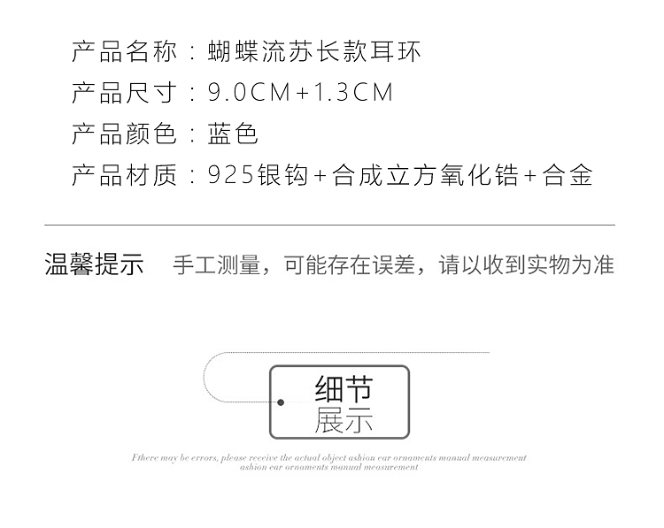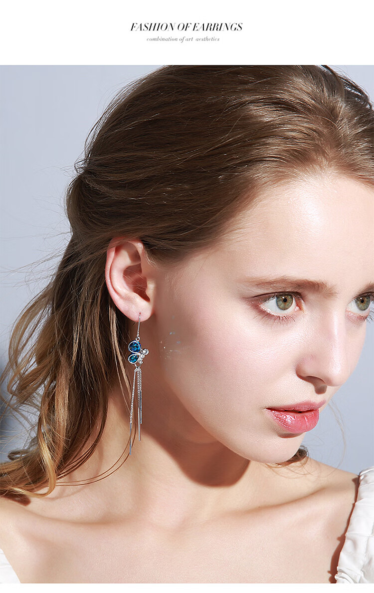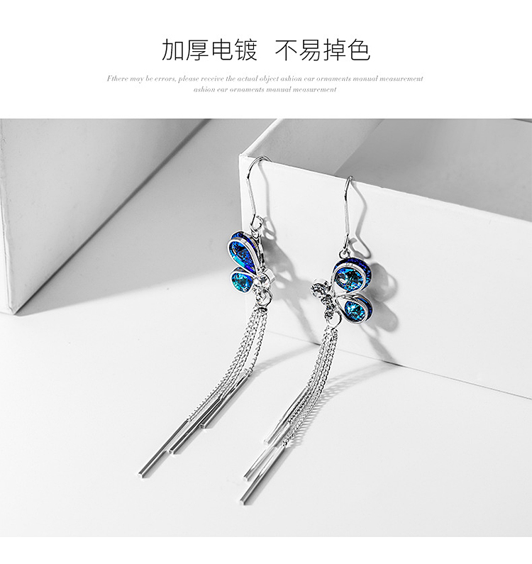 京东自营桑玛纯银钩蝴蝶流苏耳环女款时尚韩版学生潮流长款耳钉蓝水晶925银钩耳坠女士耳钩海洋之心蓝钻耳饰品首饰 蝴蝶结流苏长款耳环