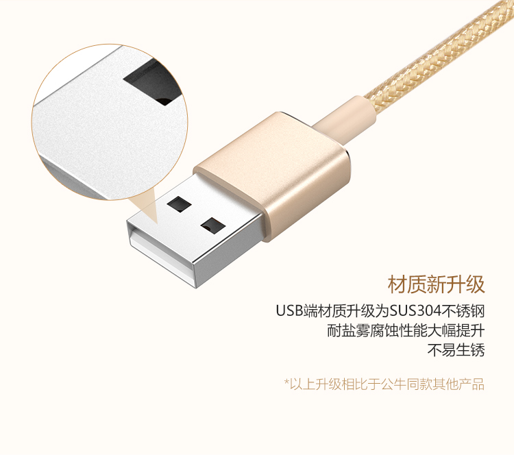 京东自营公牛 BULL GN-J6210 Type-C编织数据线/USB转接头充电线/三星/华为/小米香槟金1米