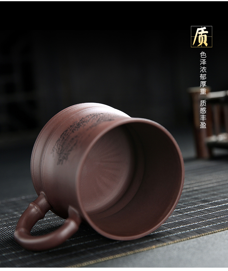 京东自营金镶玉 宜兴紫砂茶杯 刻绘手工陶瓷杯茶具泡茶杯保温杯茶缸茶水杯 山水竹节紫砂杯