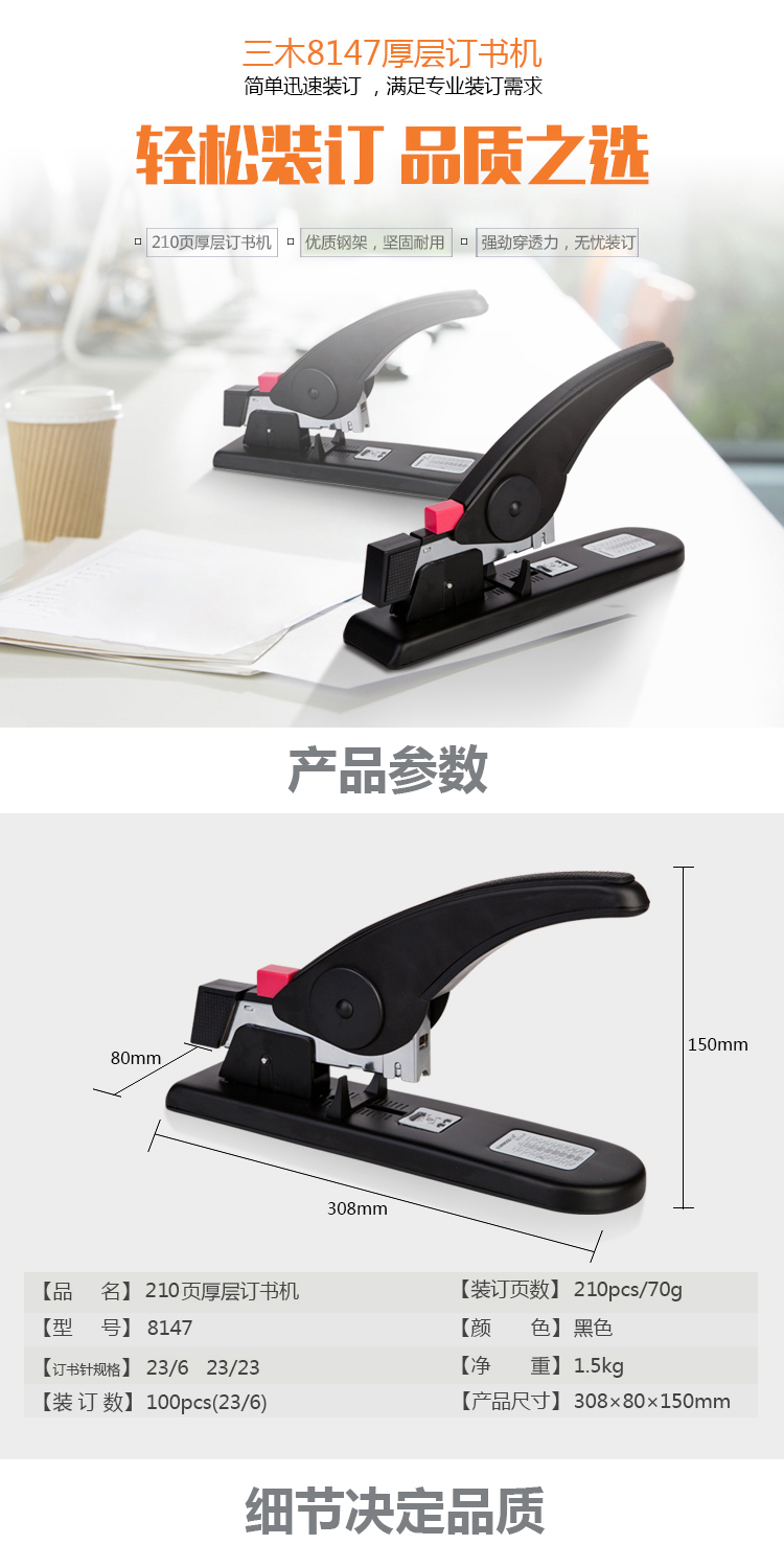 京东自营三木(SUNWOOD) 23/6-23/23厚层订书机/重型订书器/装订器/可订210页 8147