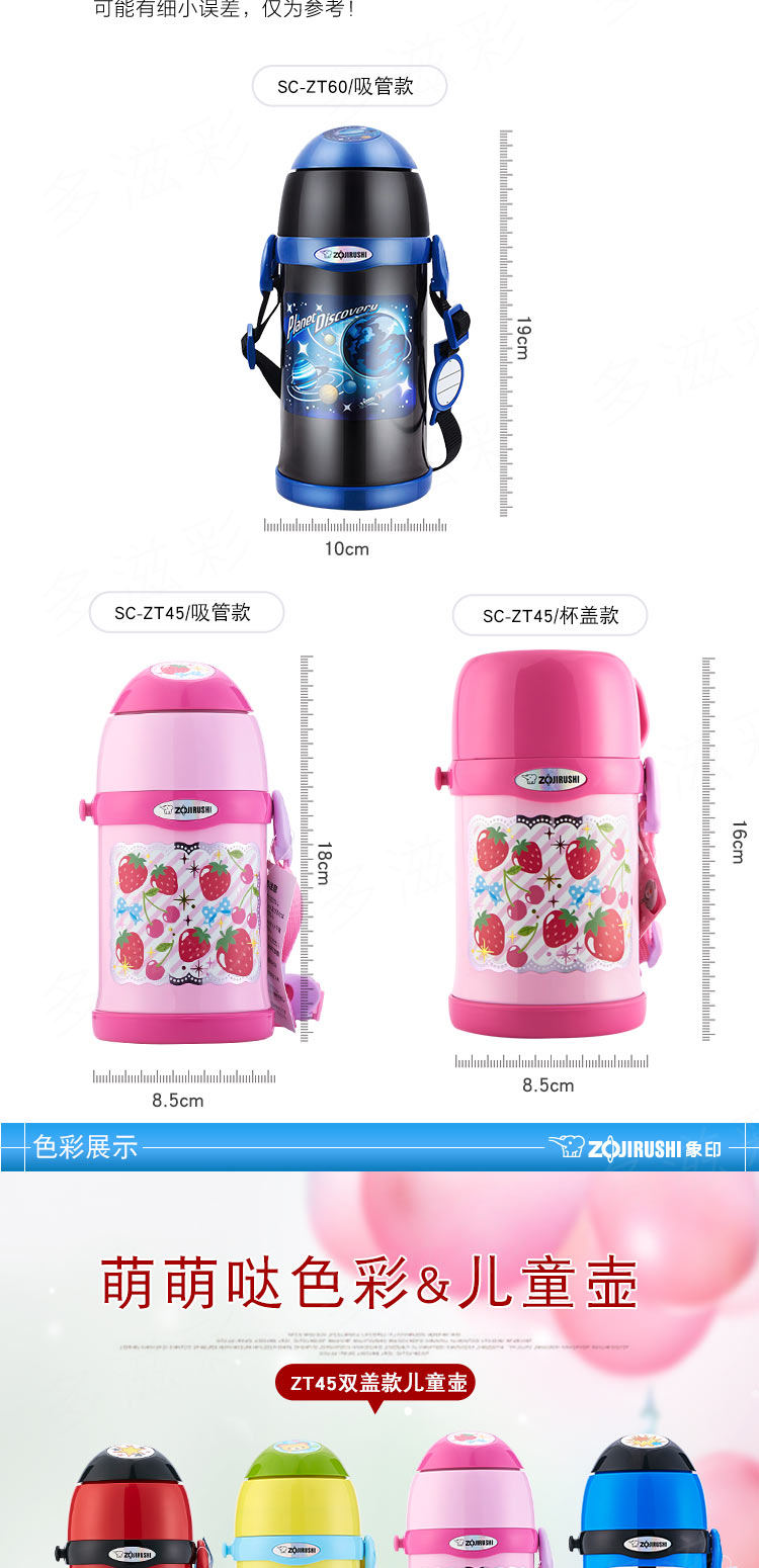 京东自营象印(ZOJIRUSHI)600ml不锈钢真空保温保冷双盖两用带吸管儿童水壶水杯子SC-ZT60-BA