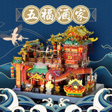 京东自营艺模3d立体拼图金属拼插拼装手工diy建筑模型中华街醉霄楼万年台送男友女友生日节日七夕情人节创意礼物 YM-N079G-C五福酒家