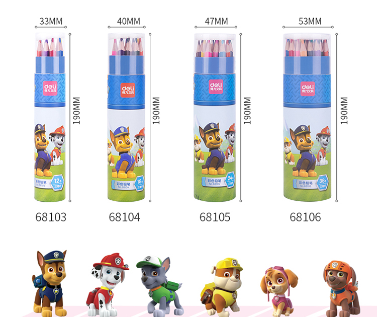 京东自营得力(deli)汪汪队立大功系列24色油性彩色铅笔学生绘画彩铅 颜色随机68105