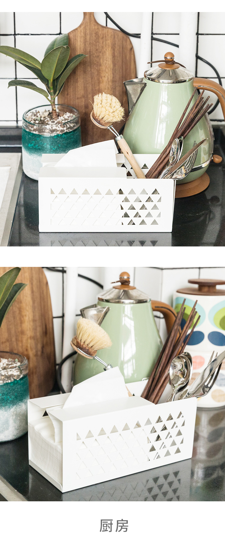 京东自营佳佰 铁艺多功能收纳盒 家用抽纸盒 创意餐巾纸盒 创意收纳盒23cm*10.5cm*10cm 哑光白