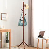 京东自营家逸实木衣帽架卧室办公落地衣架加粗挂衣架 棕色