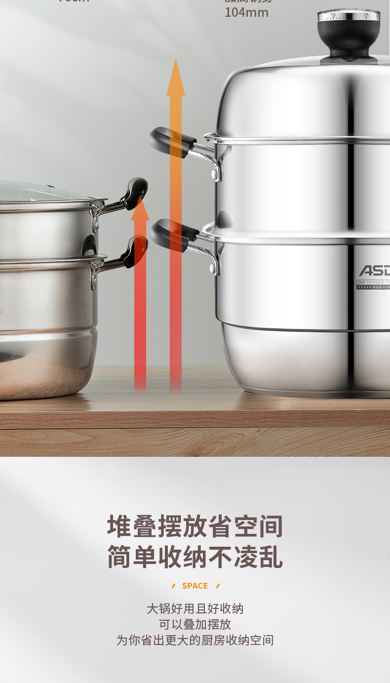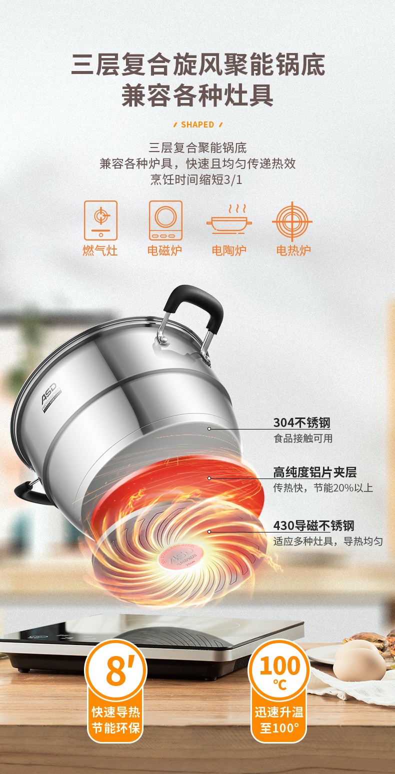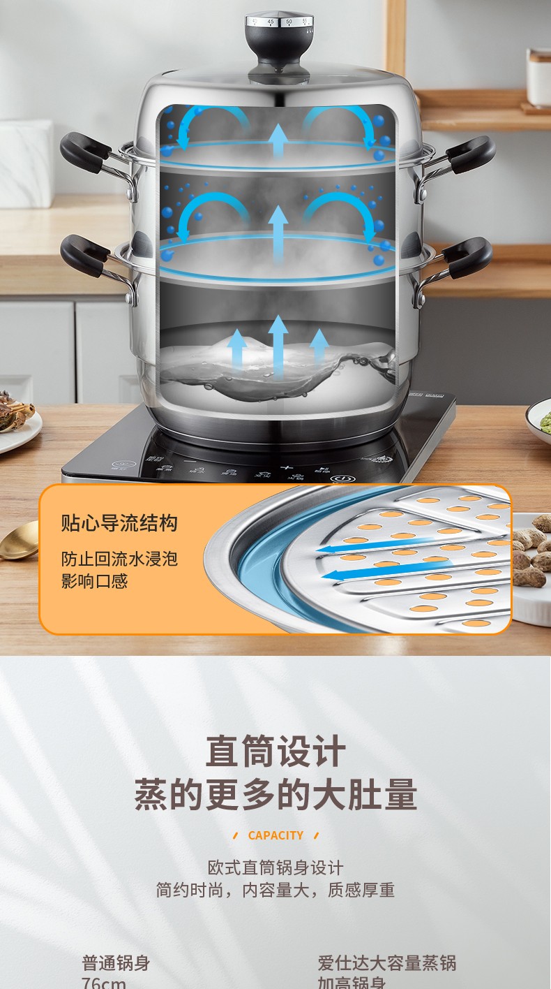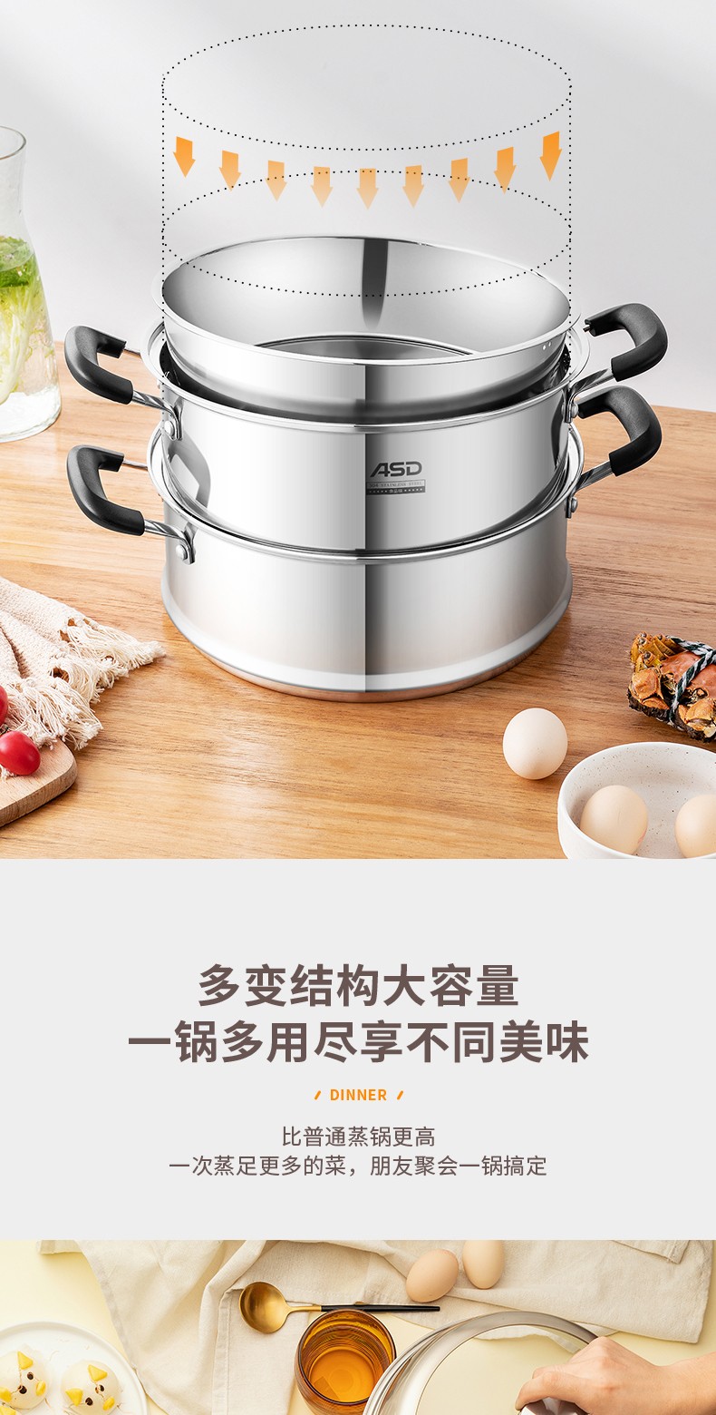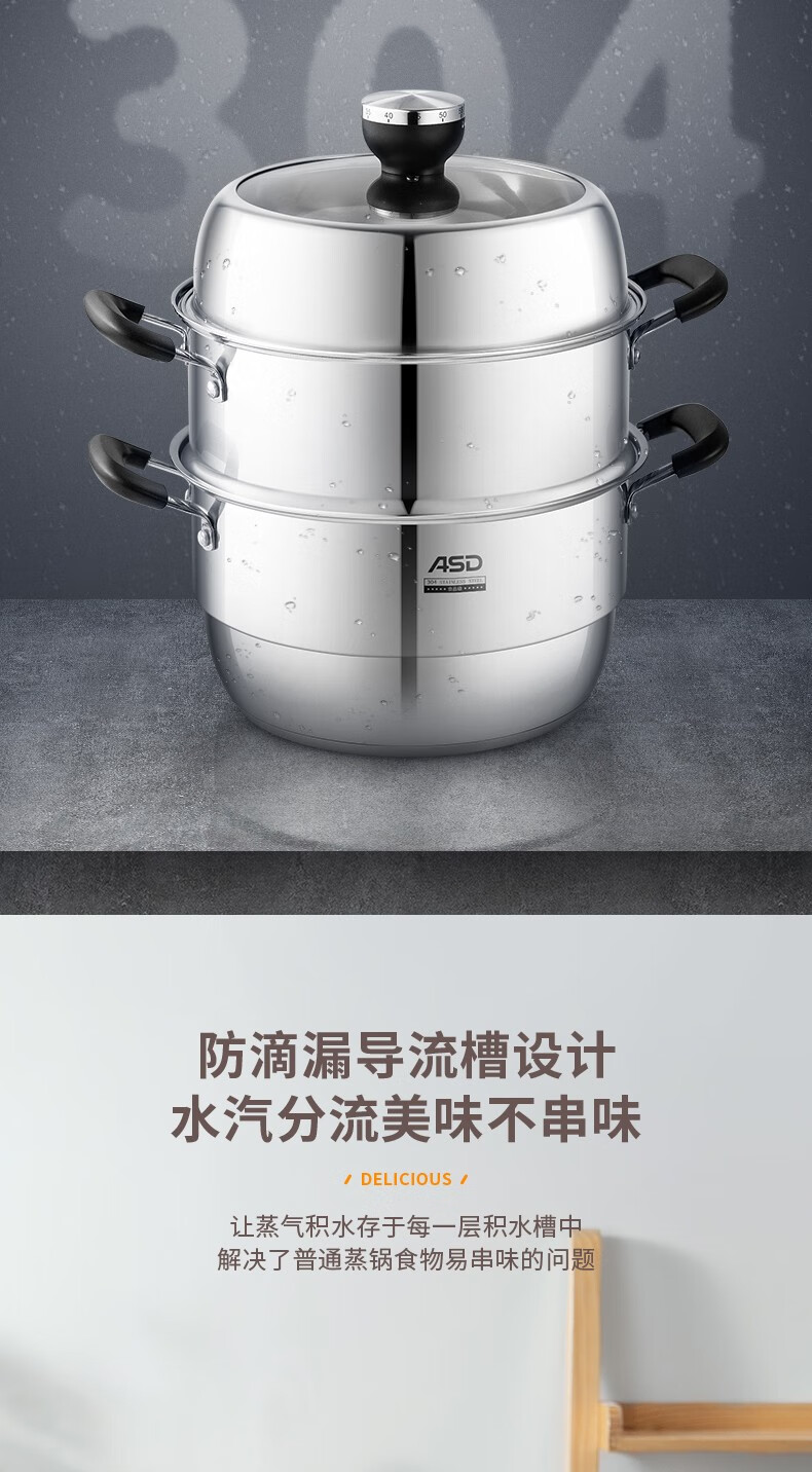 京东自营爱仕达ASD电磁炉通用不锈钢复底三层蒸锅多层蒸锅 28cm