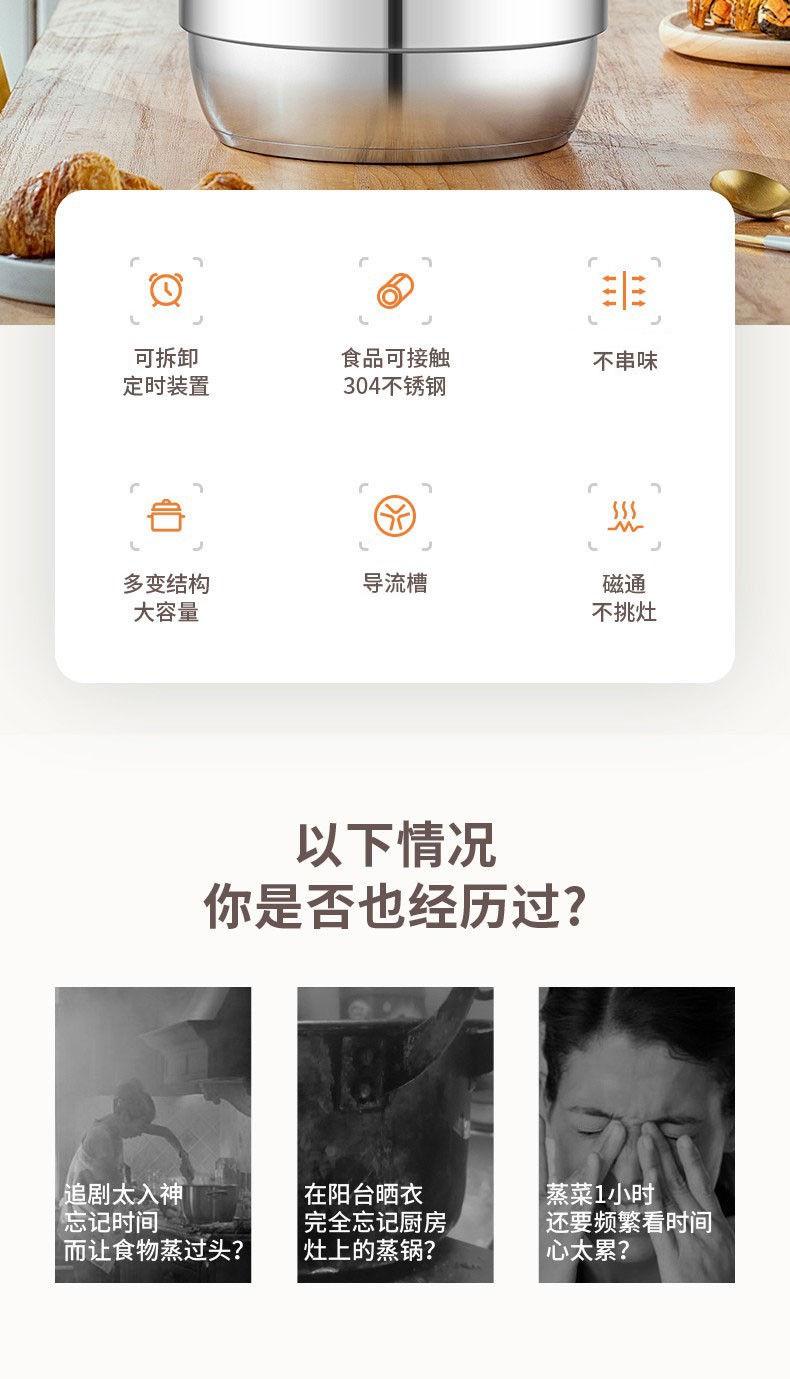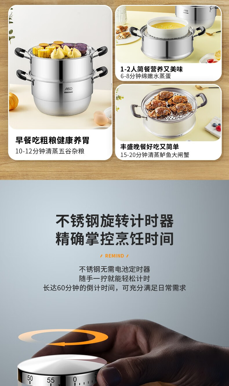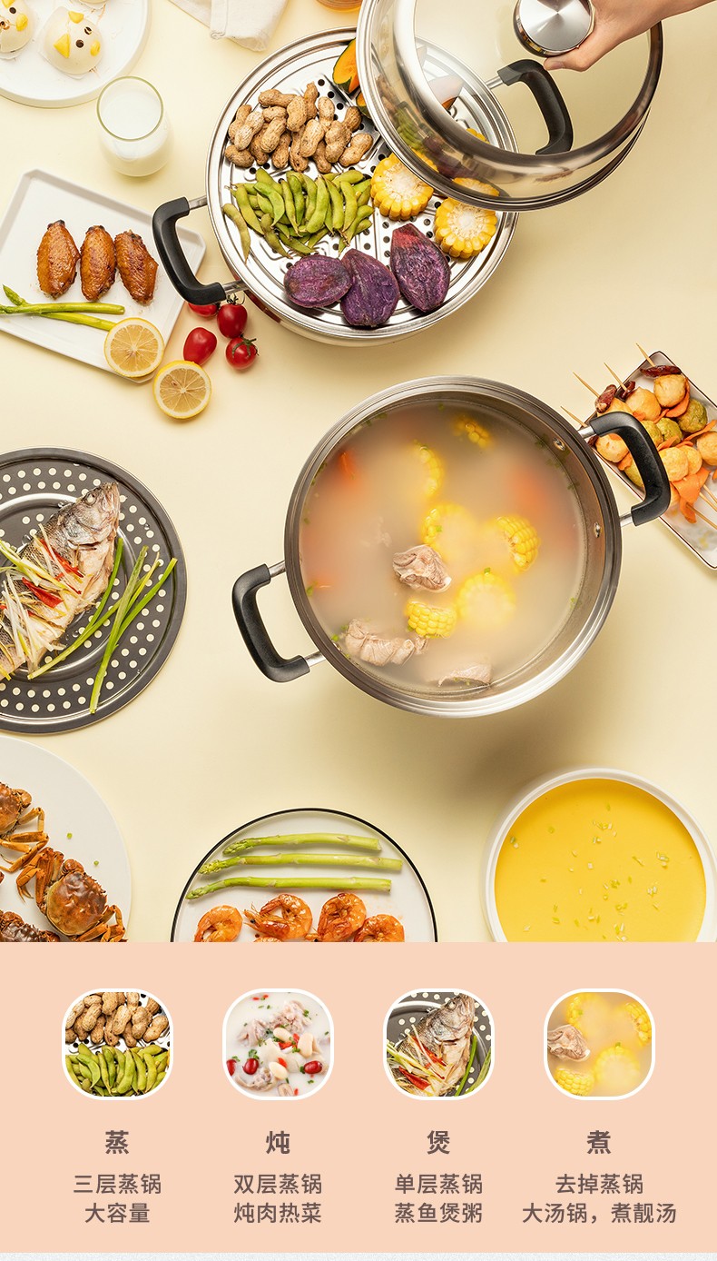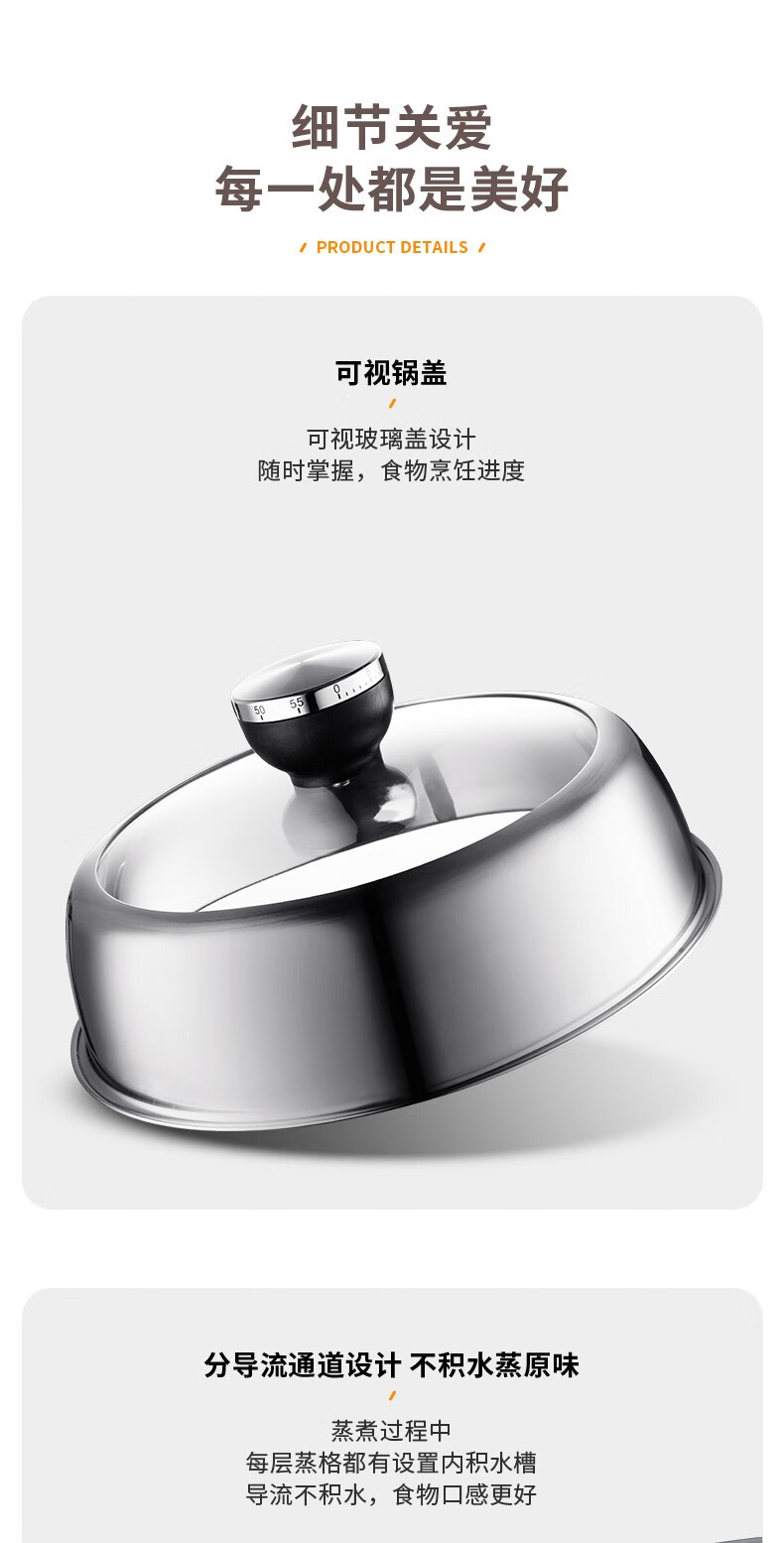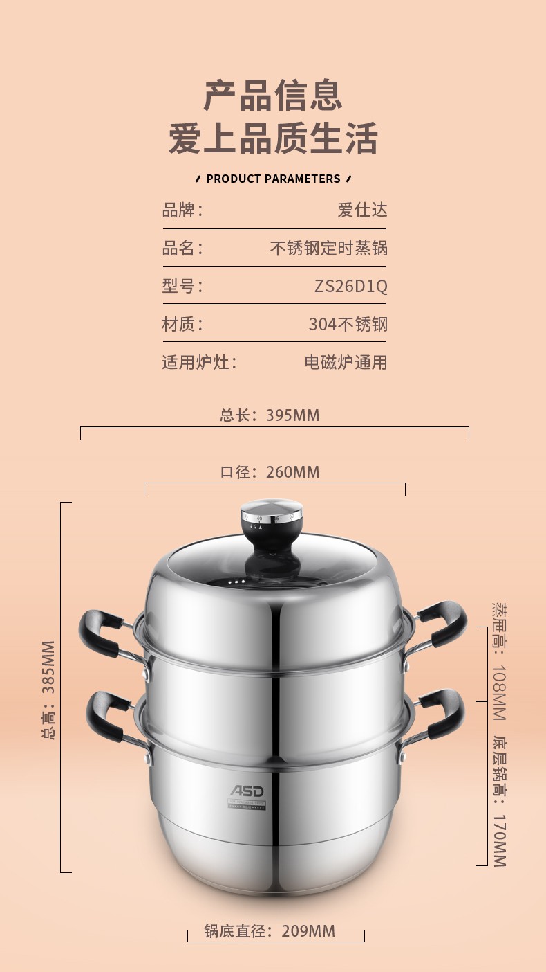 京东自营爱仕达ASD电磁炉通用不锈钢复底三层蒸锅多层蒸锅 28cm