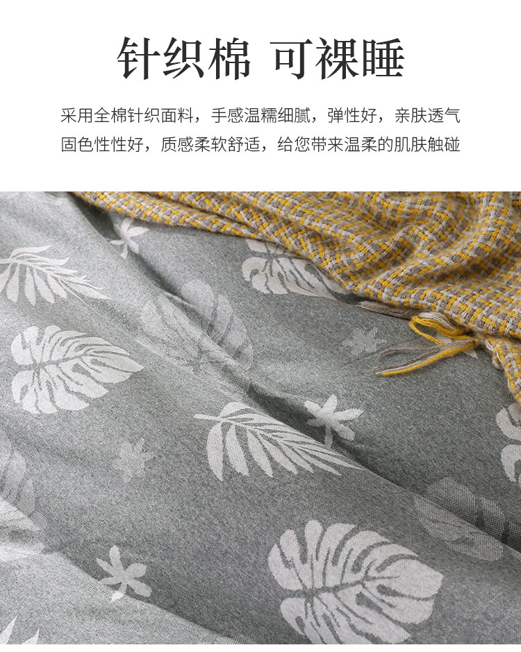 京东自营瑞卡丝家纺 全棉针织提花四件套 床单式套件简约纯棉床上双人床品套件1.5/1.8米床被套200*230 树叶灰