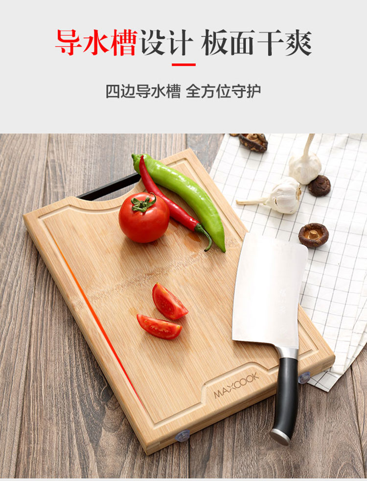 京东自营美厨(maxcook)3cm加厚砧板天然整竹菜板案板 38*26*3cm MCPJ677