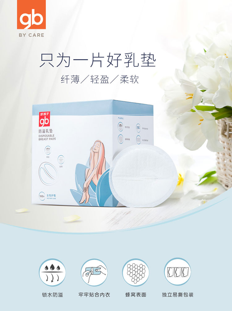 京东自营gb好孩子 孕妇产妇防溢乳垫 一次性防溢乳贴溢奶垫 柔软透气 100片盒装 独立包装便携