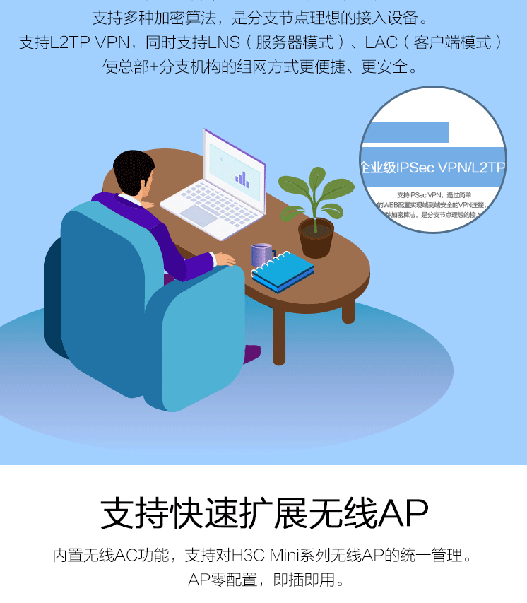 京东自营华三(H3C)Mini M50 企业级VPN路由器 千兆端口/AP管理 Mini M50