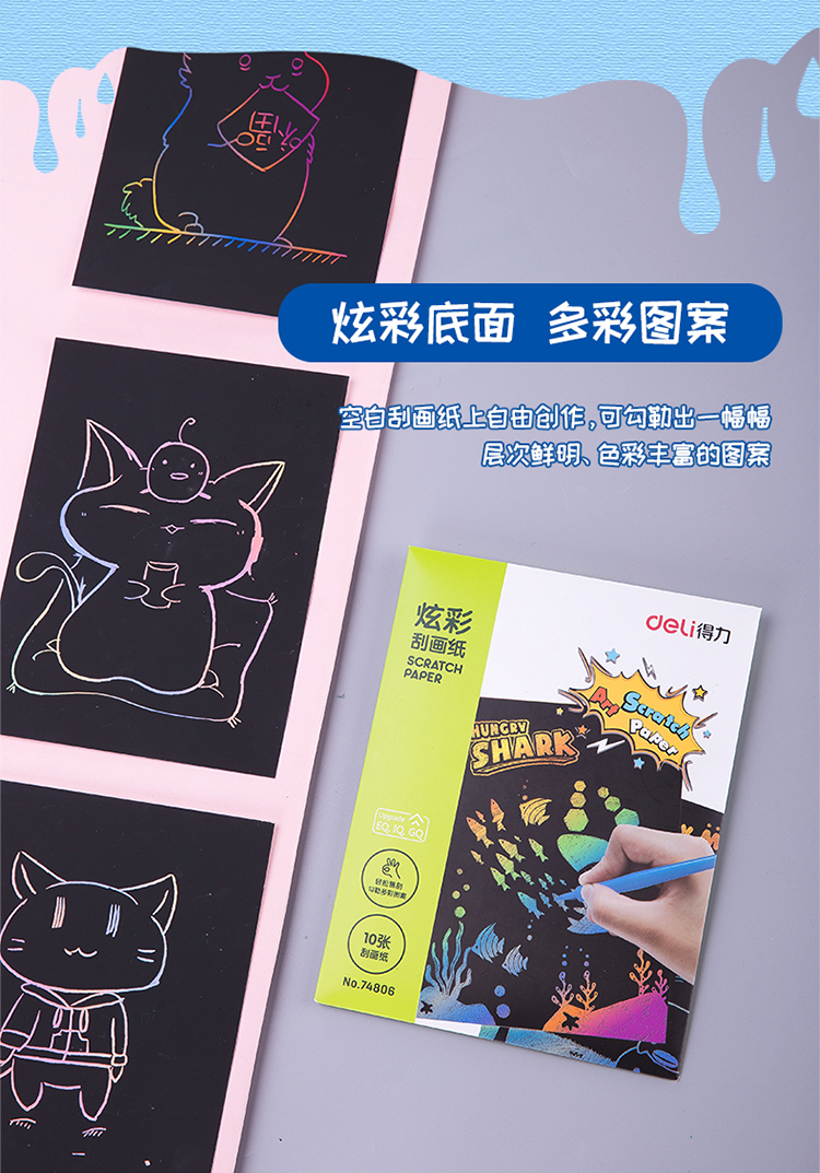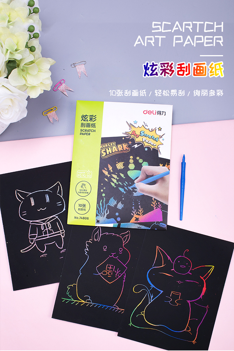 京东自营得力(deli)10张/15*20cm炫彩学生刮画纸 手工绘画 创意DIY玩具74806