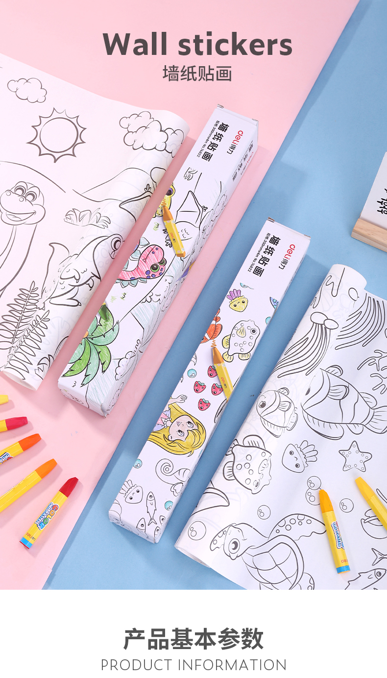京东自营得力(deli)自粘儿童墙纸贴画可涂画创意DIY粘贴儿童填色纸74822